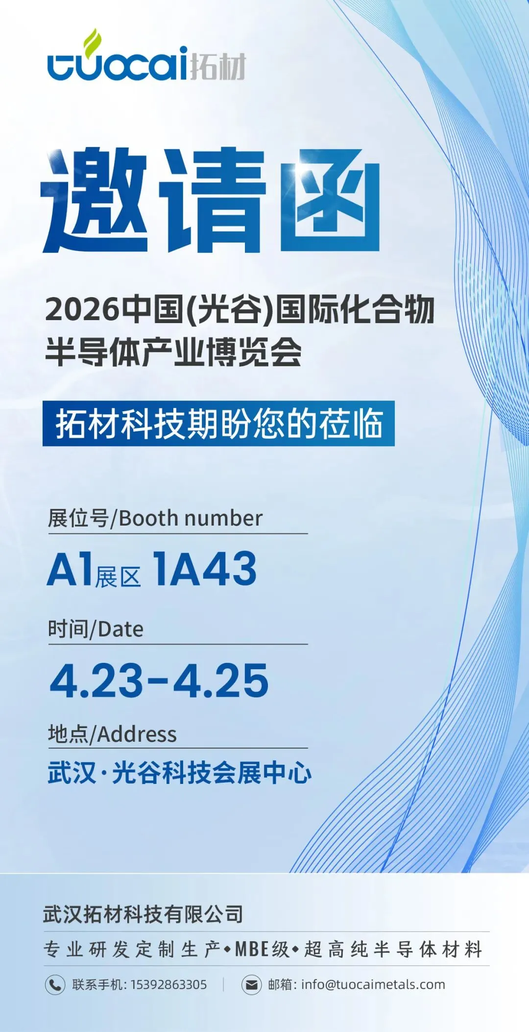 拓材科技展位位于A1展区1A43号,期盼您的莅临。