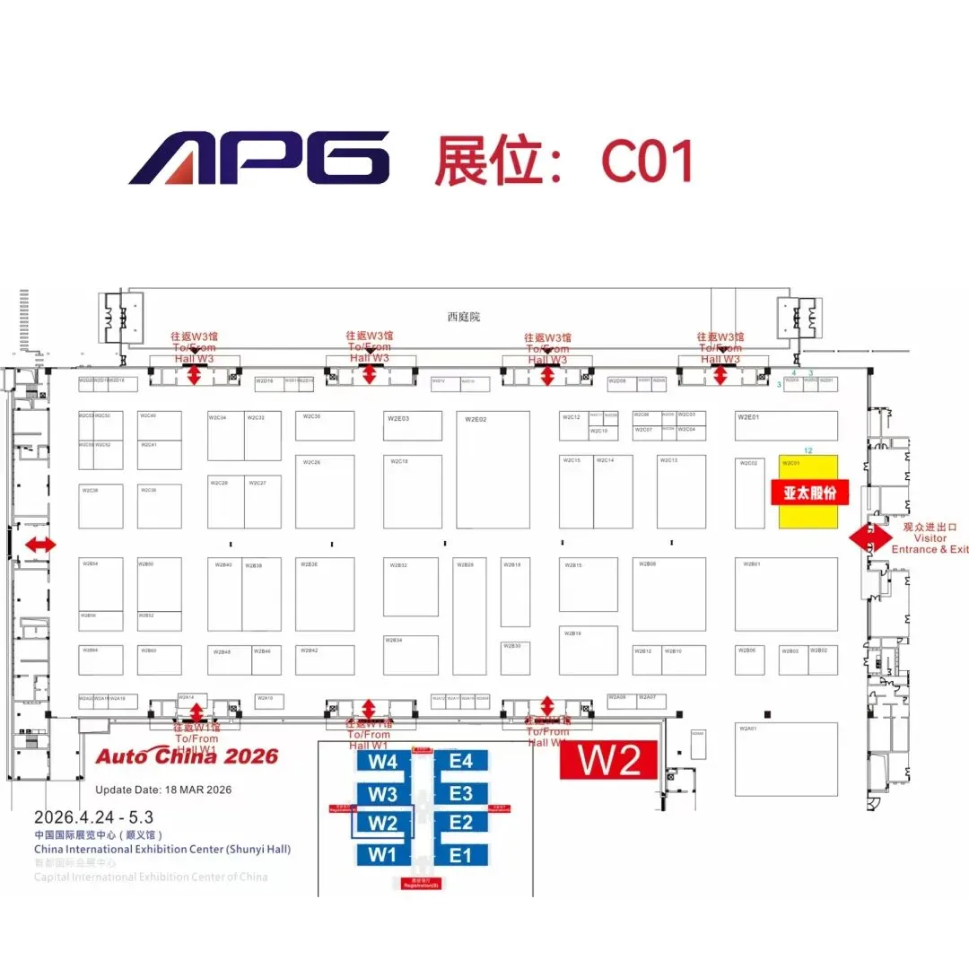 4月24日-5月3日,亚太股份将参加2026(第十九届)北京国际汽车展览会。届时,我们在北京中国国际展览中心(顺义馆)的W2C01展位,诚挚邀请各位客户朋友们莅临指导。