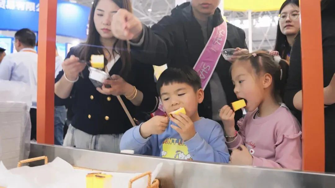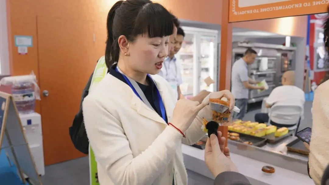 餐饮客商细致品鉴、洽谈合作,产品手册被一抢而空,每一口标准化的香甜,都成为品牌实力的鲜活注脚;智能化产线铸就的稳定口感、精准温控锁住的诱人风味,让“方便又好吃”的Slogan落地生根,“蛋挞皮一层层的非常起酥,蛋挞液也非常的香”现场客户给出高度赞赏,品尝后不仅竖起大拇指。