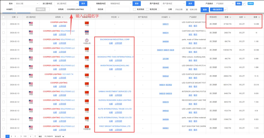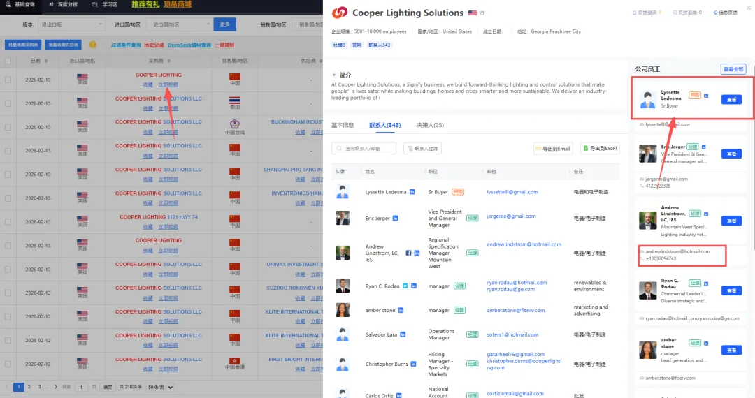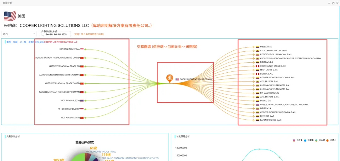 139届春节广交会在2026.4.15马上就要开始了,很多外贸朋友已经在紧锣密鼓的筹备着,之前也分享了一些关于广交会的一些技巧,大家可以回顾一下。今天给大家分享一下如何在广交会上快速拿下客户,获取到订单,建议点赞收藏备用。比如说我要邀约的时候,我手里有很多老客户,但是近期也没下单,不知道客户现在还做不做外贸,还从不从中国采购了,这个时候我们就可以用海关数据来进行分析。比如这个客户COOPER LIGHTING 之前一直是从我们公司有采购的,但是近期没有采购了,我们直接把公司名字输入海关数据进行查询和分析。可以看到这个公司目前还是在频繁的采购的,而且从中国采购的比较多。我们点开交易分析,看下具体有哪些公司,通过交易分析可以看到,这个公司现在目前的业务模式主要是一种中间商的模式为主,从我们这边采购,然后在销往像哥伦比亚、智利这些南美国家。我们知道了客户的业务模式之后,在给客户报价的时候,就能更好的进行一个把握了。然后就是查看一下客户的采购人还有没有变化,方便我们更好的进行联系和沟通,通过立即挖掘,看到这个公司的采购还是之前我联系的那个采购经理 Lyssette Ledesma,邮箱也没啥问题,然后就直接进行联系沟通啥的了。然后我们就开始进行邀约,当然能邀约到肯定是最好的,邀约不到我们也可以说一下我们现在有什么新品,顺便给客户介绍一下,说不定客户就有兴趣了。我们参加完展会之后,肯定会收获到很多的客户名片,不是管新客户还是老客户的,我们都可以用海关数据做一下简单的背调。现在广交会上亚非拉的客户还是蛮多的,亚非拉很多国家都开放海关数据,所以背调起来还是蛮有用的。我们展后对客户进行背调的话,可以从下面三个方面进行:①他到底买不买(真假客户)