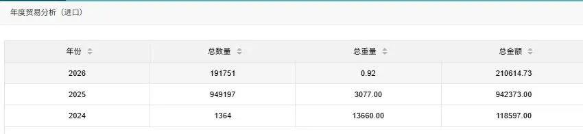 我们点开年度贸易分析,可以看到客户的一年的采购量还是比较可观的,而且今年的采购量还挺多的。