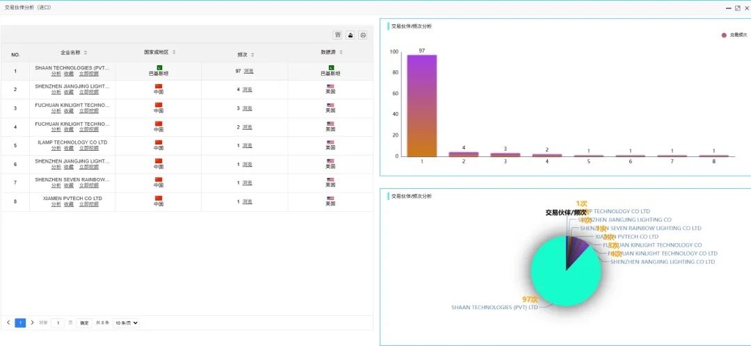 通过交易伙伴分析可以看到,这个客户从巴基斯坦采购是最多的,也有从中国采购,这个时候我们就可以顺便分析一下客户从巴基斯坦采购的一些情况,方便我们更好的跟进话转化。
