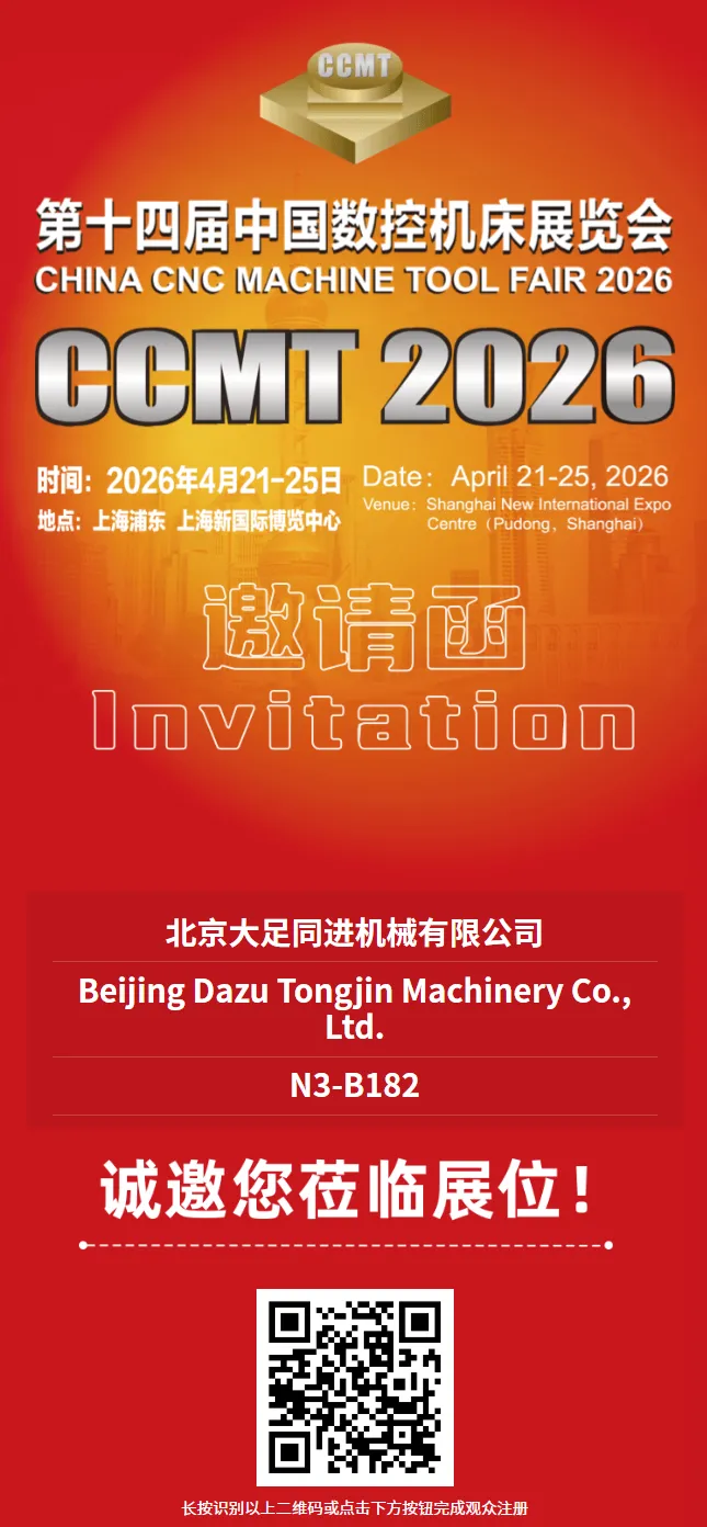 春暖花开,盛会如期。大足同进机械有限公司 正式确认参展 第十四届中国数控机床展览会(CCMT2026)!作为国内领先的精密珩磨设备制造商,我们已整装待发,即将在上海与您见面。