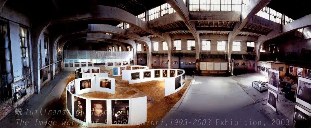“蜕——荣荣和映里的影像世界”展览现场,798工厂大窑炉,2003年。