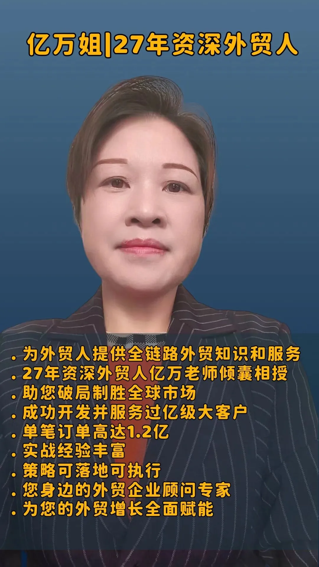 亿万外贸精英荟 |个人微信号: Ambition-899 验证:公众号一旦您成功添加我的微信,即可扫描专属二维码,免费领取为您精心准备的“外贸干货资料”。这些资料包含了外贸领域的最新知识、实用技巧和成功案例,旨在助您在外贸道路上走得更远、更稳。欢迎您们关注我的公众号:“亿万外贸精英荟”。致力于分享外贸领域的最新知识、技巧和成功案例,让知识成为您外贸之路上的坚实动力。
