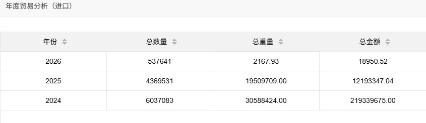 点开年度贸易分析,能清晰看到客户年采购规模,甚至今年的采购量变化,快速判断客户价值,优先跟进大单客户。