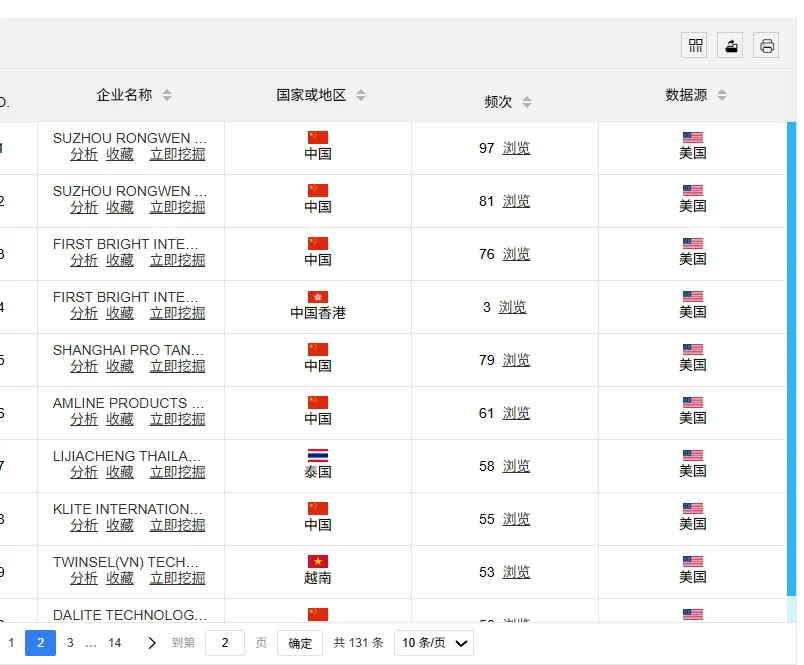 通过交易伙伴分析,能看到客户当前主要供货来源。这个客户从中国采购频次还挺多的, 可以重点跟进转化下。