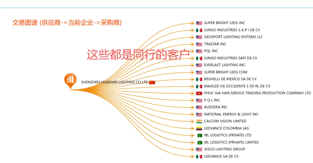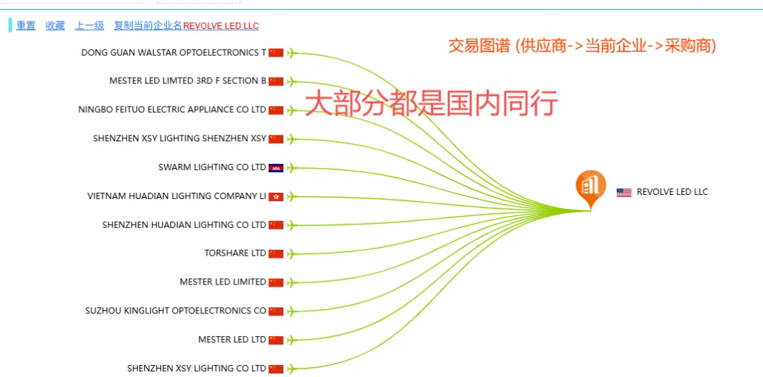 比如以老客户 REVOLVE LED LLC 为切入点,查看其合作的国内同行。