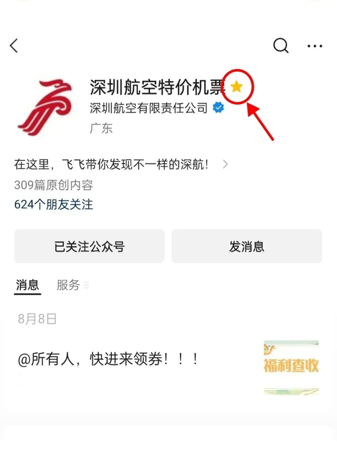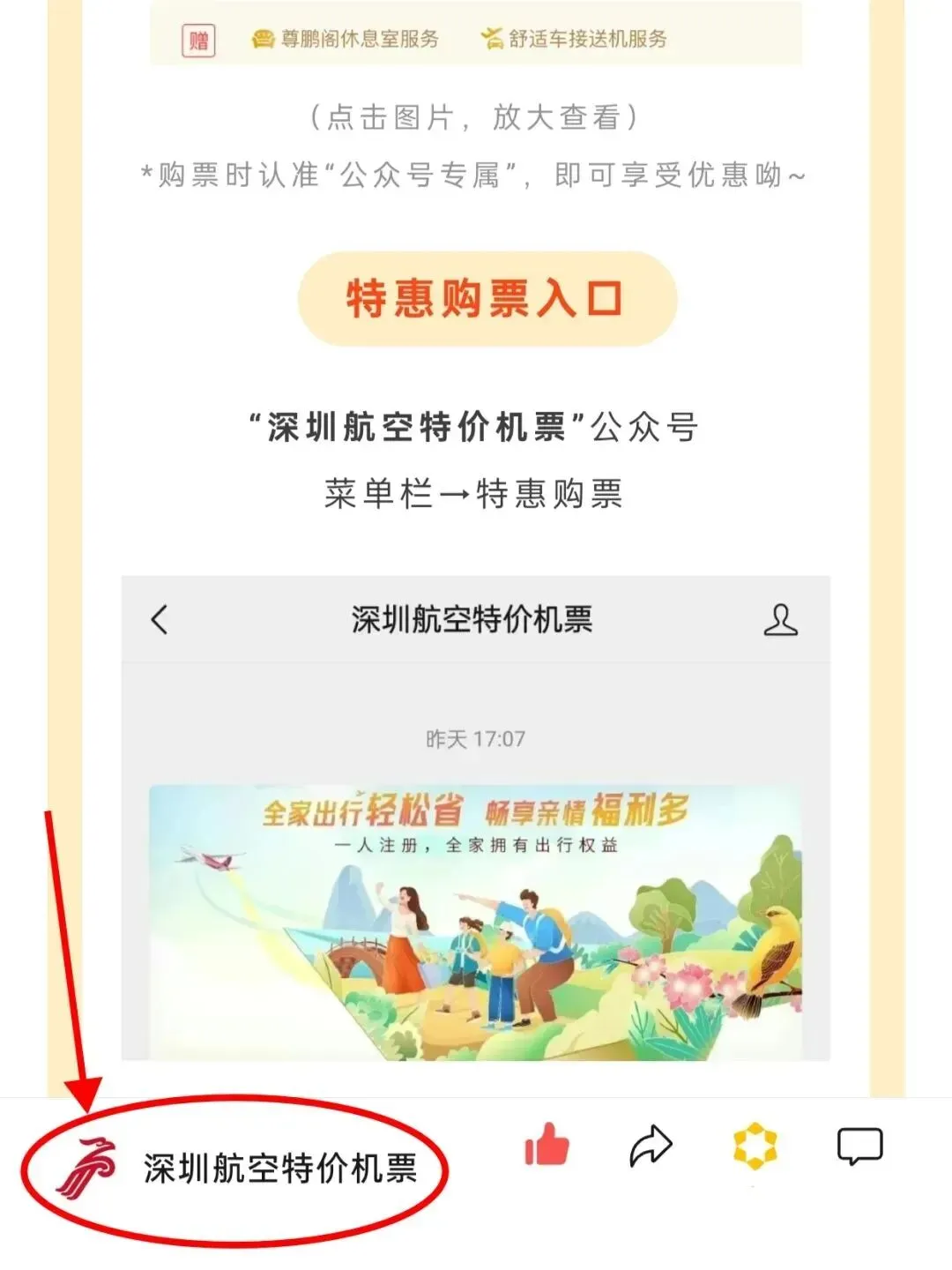点亮在看、按下图指引星标深圳航空特价机票