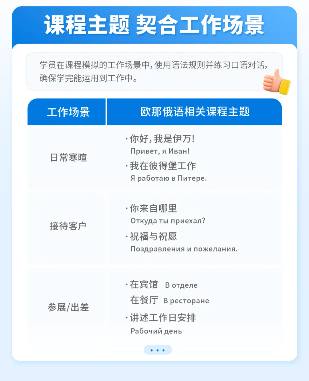 展会上,我们会遇见各种各样的客户和问题,了解一些询问或者解答产品用途、功能、标准等方面的俄语句子,就显得非常有必要!Где используют эту продукцию?Эта продукция из какого материала?Есть другие функции/модель/цвет?Посмотрите каталог, пожалуйста! Может быть там есть.Сколько вы хотели бы заказать?Я могу предложить вам ознакомиться подробнее с этим оборудованием по нашим рекламным материалам.我建议贵方看看我们的广告材料,详细了解一下这套设备。Мы надеемся, вы закупите наше оборудование после того, как увидите наши экспонаты.Здравствуйте, какую модель вам?У вас есть сертификат на эту обувь ?Добро пожаловать к нам на посещение фабрики!如果你想要在广交会上,接到更多俄罗斯采购商的单子,那么俄语是必备技能之一了!想学习俄语搞定更多俄罗斯客户,不妨从现在开始?