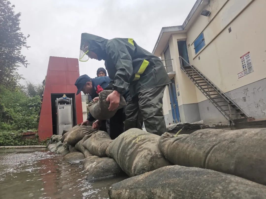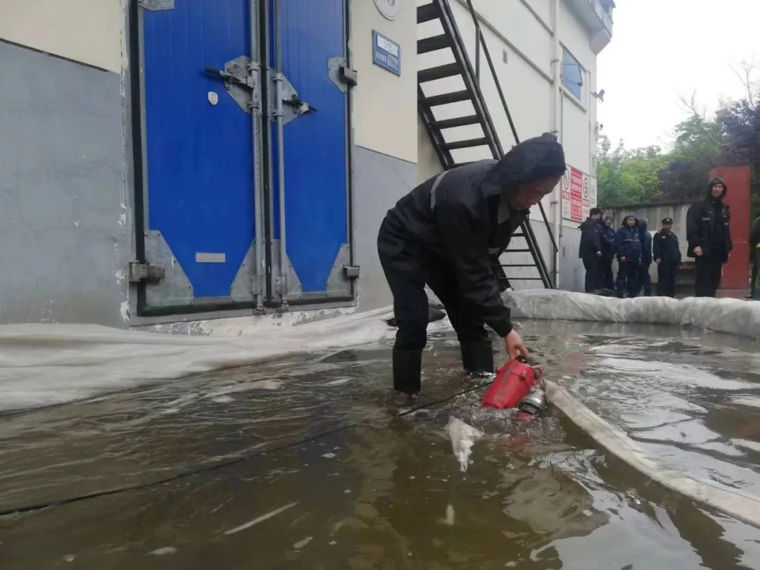 结合该库所处地势低洼的实际环境,演练模拟遭遇持续暴雨和强对流天气袭击,库外河水上涨淹没排水孔后倒灌、公路一线雨水倒流引发内涝的场景,通过险情上报、库区人员迅速应急自救处置、部门及时增援抢险、公司快速联动支援,实战演练了封堵排水口、库点大门,防止河水倒灌、雨水倒流以及内涝排水等项目。