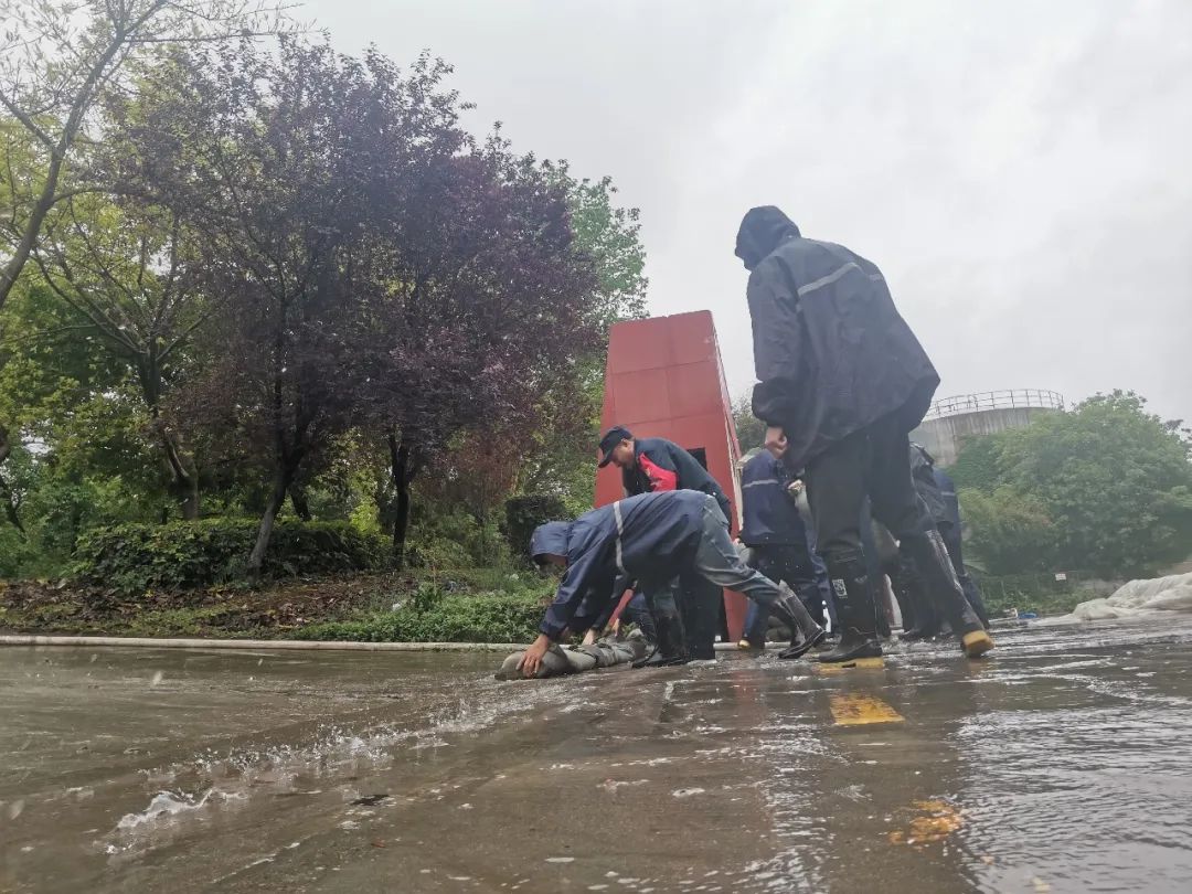 演练中,人员迅速分工协作,搬运沙袋、加固封堵、铺设水管、应急排水,检验了公司应急指挥、部门协作联动、人员应变自救等能力,达到了演练预期目的。
