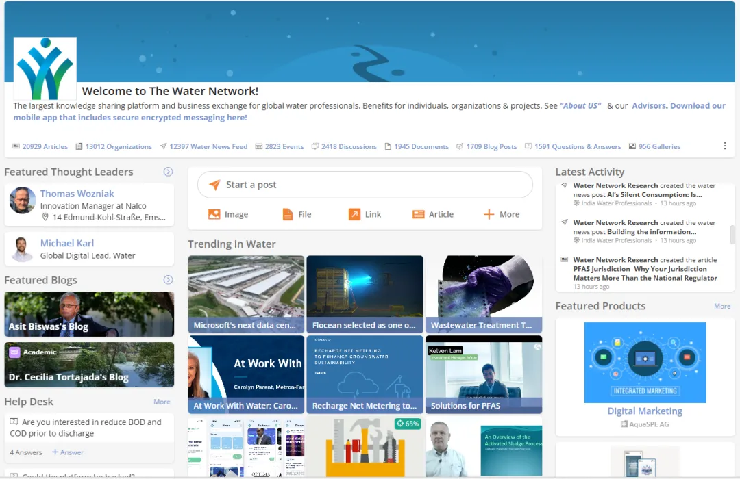此外,例如The Water Network 全球水行业专业社群平台,汇集了超30万人次的大量工程师、咨询机构和项目方用户,是企业进行内容传播和客户触达的重要渠道。企业可以免费在 The Water Network 发布专题内容、技术文章或项目案例,也可付费结合其 newsletter 推送机制,将相关内容定期发送至平台用户邮箱,实现持续触达潜在客户。以其官方推出的 Digital Marketing Package 为例,该套餐通常包含内容发布、邮件推送、社交媒体分发以及平台曝光等组合形式,按市场反馈来看,整体投入约相当于半年约10万元人民币级别,即可获得持续曝光和精准行业触达。