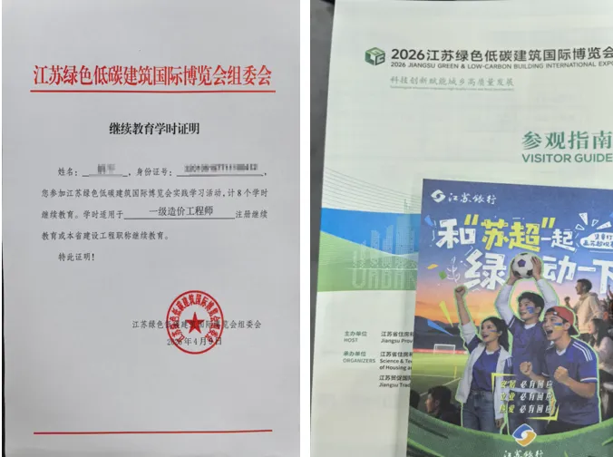 经江苏省工程造价管理协会推荐,永和公司于4月9日组织了部分造价咨询专业技术人员到江苏绿色低碳建筑国际博览会参观学习。除线上课程、集中培训等传统学习方式外,永和借助本次博览会创新推出"展会观摩学习实践活动",将课堂从课桌延伸至现场,在技术应用实践场景中开展沉浸式学习,大家既收获了8个继续教育学时,更拓展了眼界。