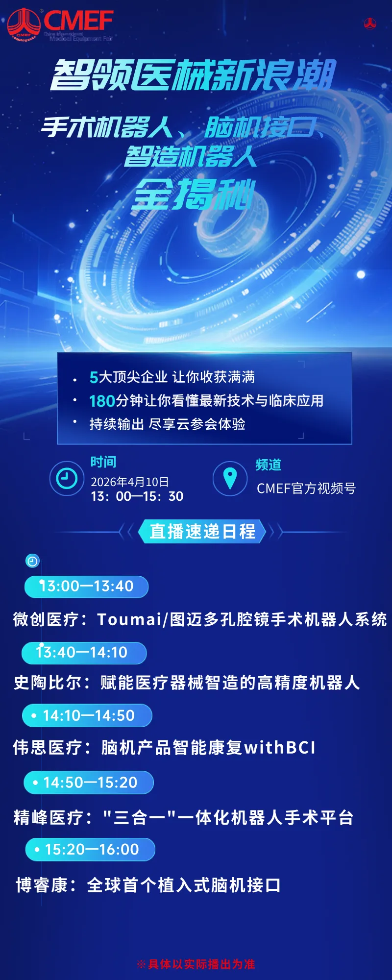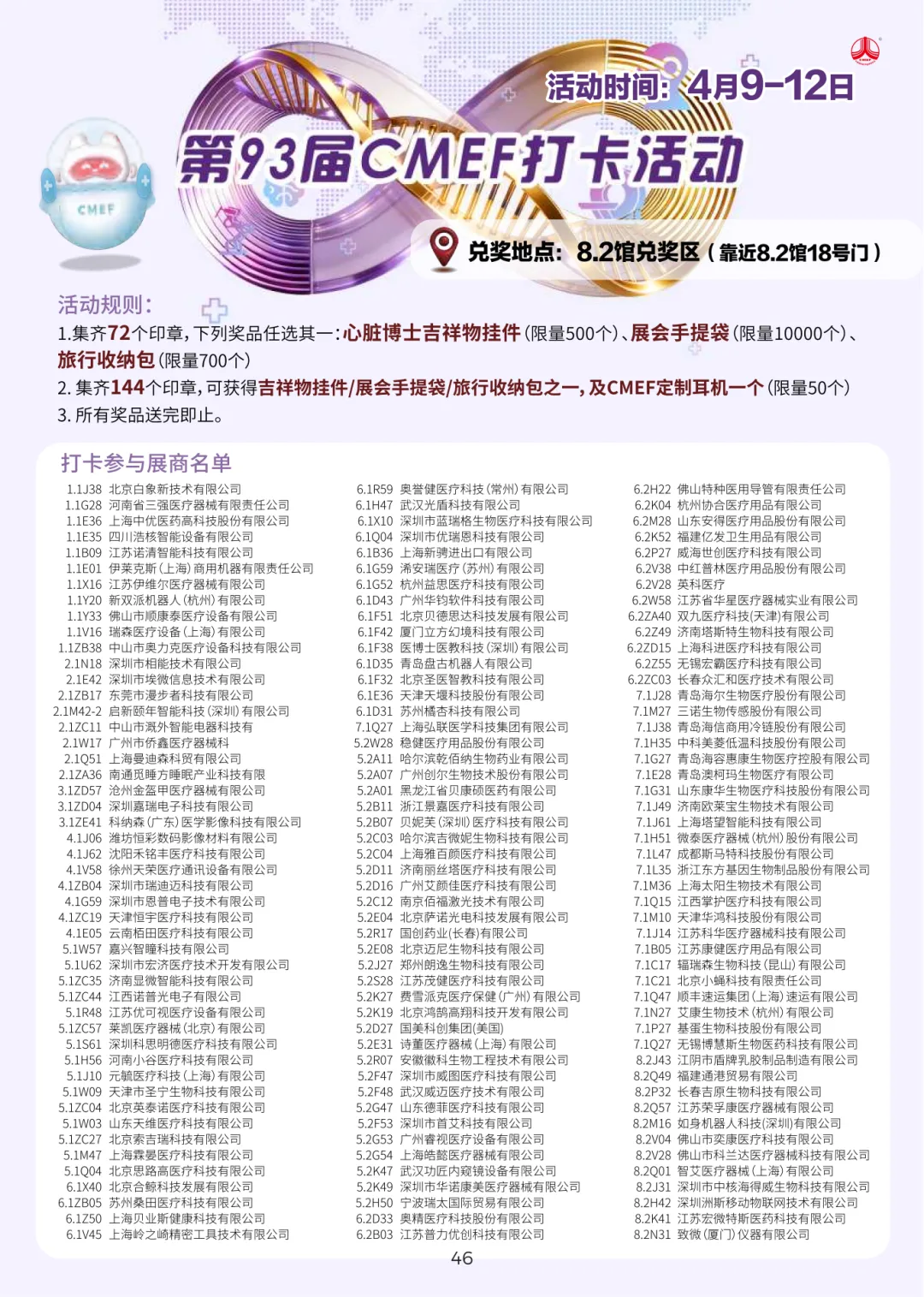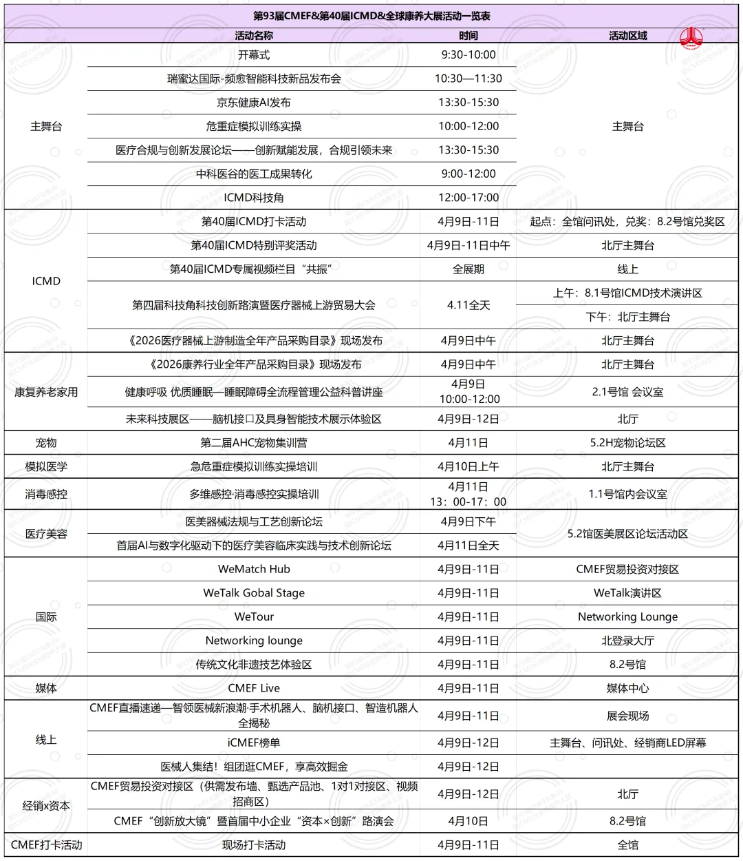 2026年4月9日至12日,第93届中国国际医疗器械博览会(CMEF)系列展在国家会展中心(上海)隆重举办。本届展会总规模超过32万平方米,汇聚全球20余个国家和地区的近5,000家品牌企业,携数万款行业新品集中亮相。