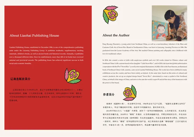 除了组建专业的版权经理队伍,做好版权输出选题建设和版权输出活动策划外,辽海出版社还特别邀请了“稚娃稻甜”创始人庞渤洋和她的团队共同参与本届国际书展。庞渤洋是东北青年艺术家,创作了一系列寓意吉祥的“中国娃”以及与中国文化、东北民俗相关的原创插画作品,受到国内外读者的喜爱,非常适合版权输出。