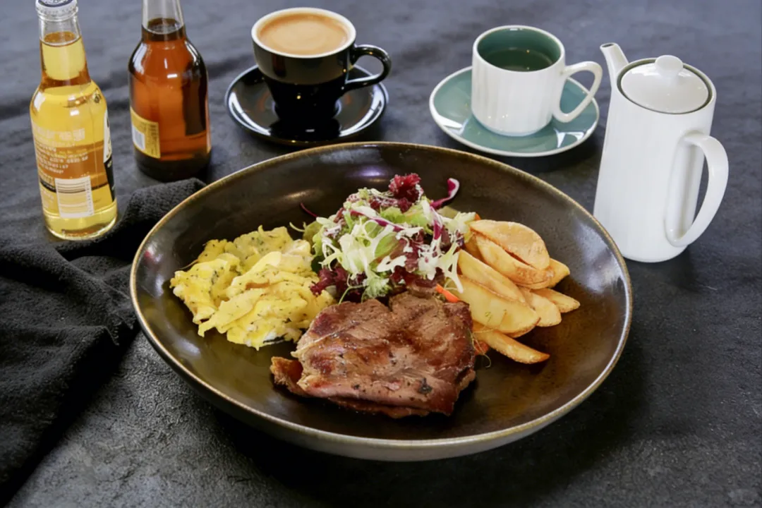 以澳洲牛扒搭配卡真香料与清新沙拉