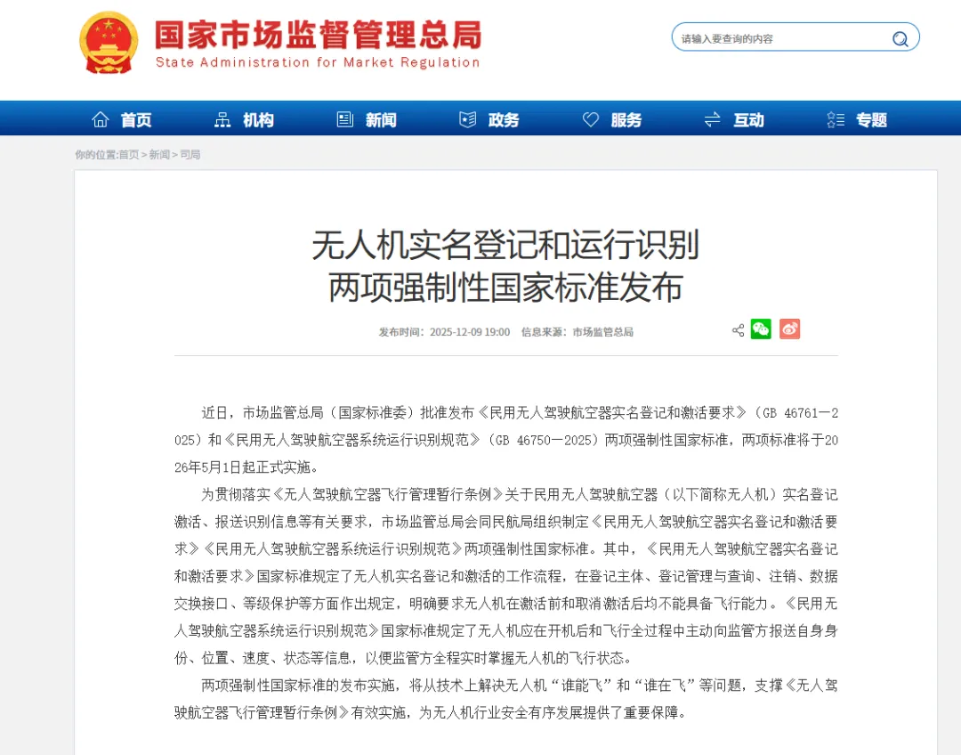 4 月 4 日消息,无人机两大强制性国标将于 5 月 1 日落地,激活、实名、电子身份全流程监管。新规要求无人机加装电子身份模块实时报位,无证商用最高罚 10 万元。政策引发二手市场抛售,挂售量涨 200%,入门玩家离场,中小厂商加速淘汰。大疆等头部企业因合规系统完善受益,行业从野蛮生长转向规范化、规模化,低空经济合规基础筑牢。