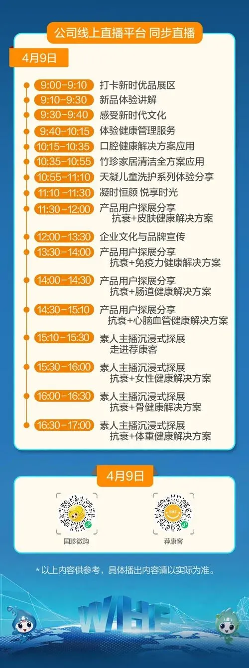 云游健博会 精彩继续4月9日,公司将继续通过直播平台对健博会现场情况进行直播。
