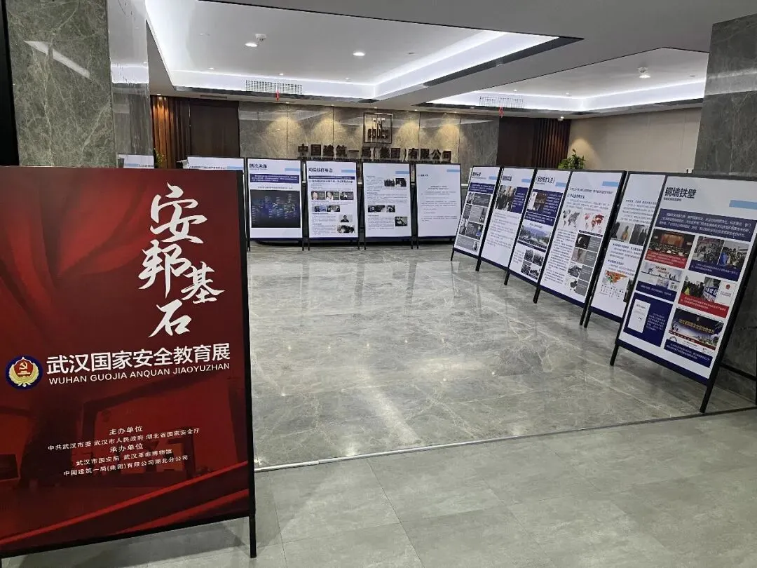 在第十一个全民国家安全教育日到来之际,为深入贯彻总体国家安全观,落实展览“五进”工作部署,武汉革命博物馆主动策划、送展上门,于4月8日至4月10日带领“安邦基石——武汉国家安全教育展”与“红色印迹——武汉红色旧址掠影”两大展览走进中国建筑一局(集团)有限公司湖北分公司。