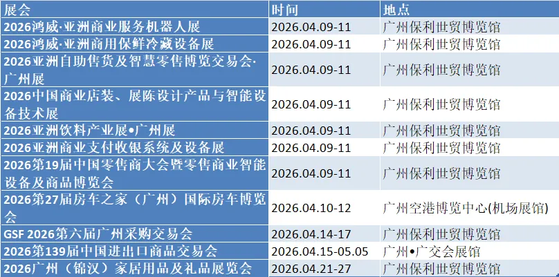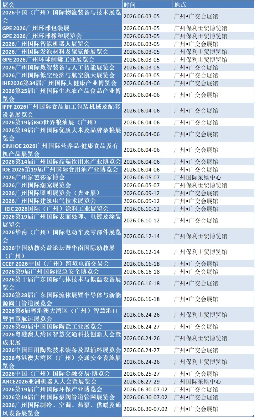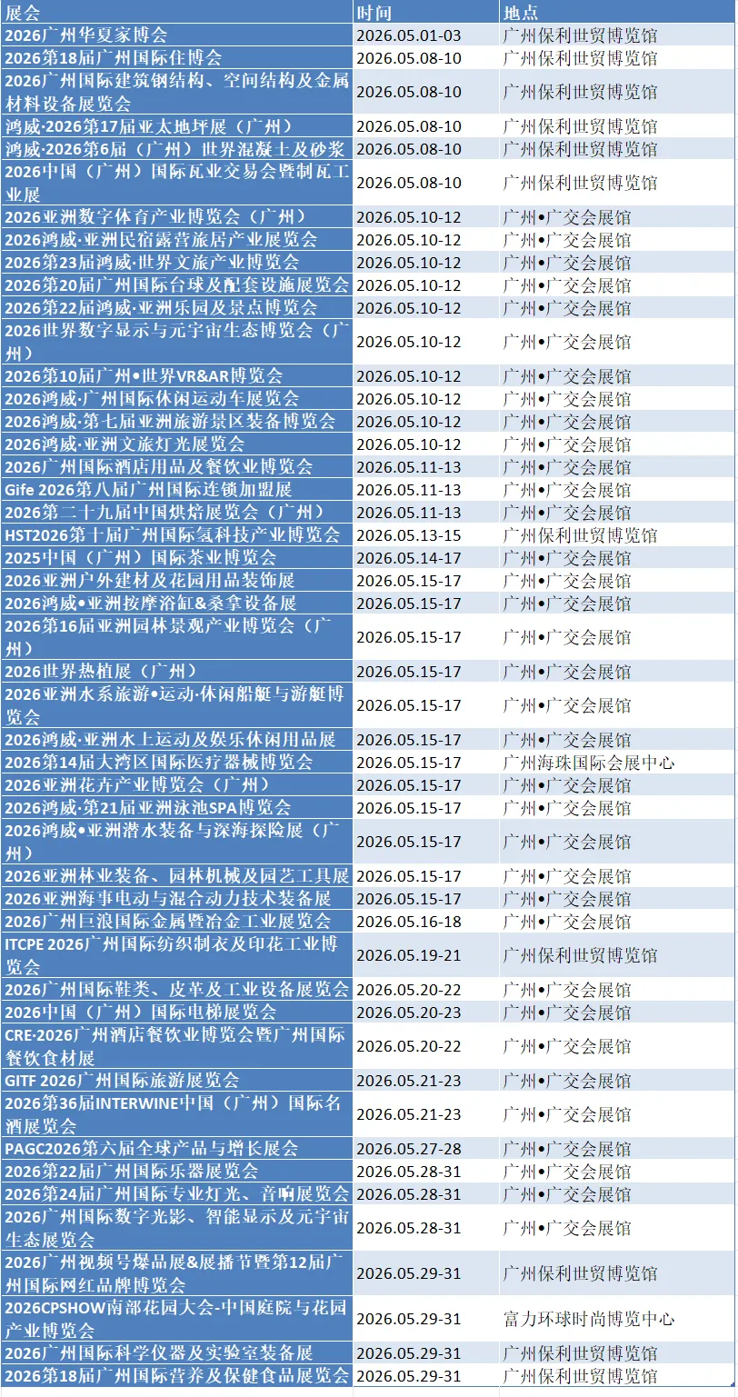 2026年4月、5月、6月广州展会时间表已经更新啦,请查收最新时间表~