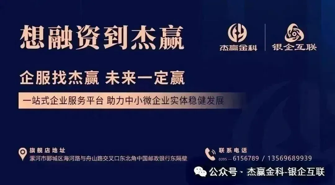 杰赢金科-银企互联,专注中小微企业 “1+6 ”一站式综合企业服务平台 ,以投融资服务为核心引擎,六大服务板块(财税服务-法务服务-信用管理-知识产权-IP短视频-营销管理)协同赋能,精准破解企业“融资痛点”,打通企业发展现金流。为更多企业注入 “融资畅、经营稳、发展快” 的成长动力,助力企业破解运营难题、激活发展潜能,护航稳健成长,为当地经济发展持续贡献企服力量!更多企业服务,请关注杰赢金科-银企互联~