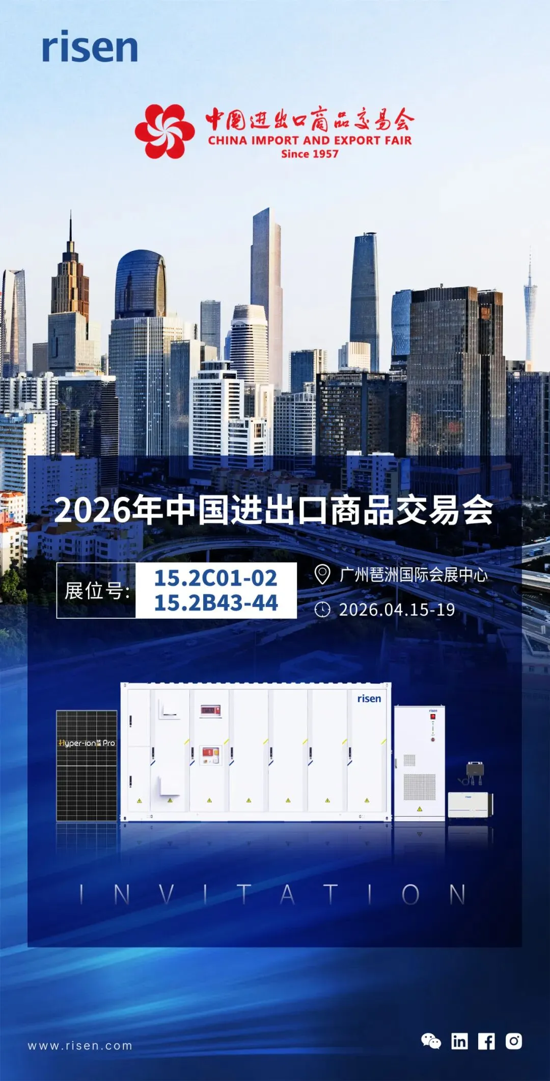 2026年春季中国进出口商品交易会(广交会)将于4月15-19日在广州琶洲国际会展中心举办,东方日升诚挚邀请全球客商莅临15.2C01-02、15.2B43-44展台,共话光储融合新机遇,共商能源转型新未来。