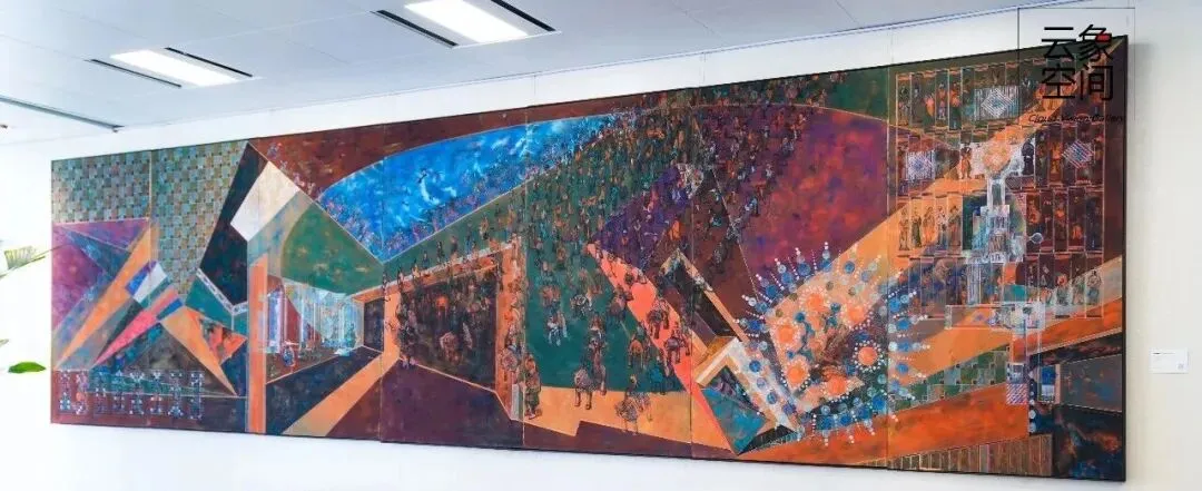 策展人陶娟评价其:“将东方的气韵‘冻结’在具有工业感和未来感的画面之中,为古老的岩彩艺术探索出了一条极具个性的当代之路。‘以残破见证永恒的创作观’ 具有学术突破性。”