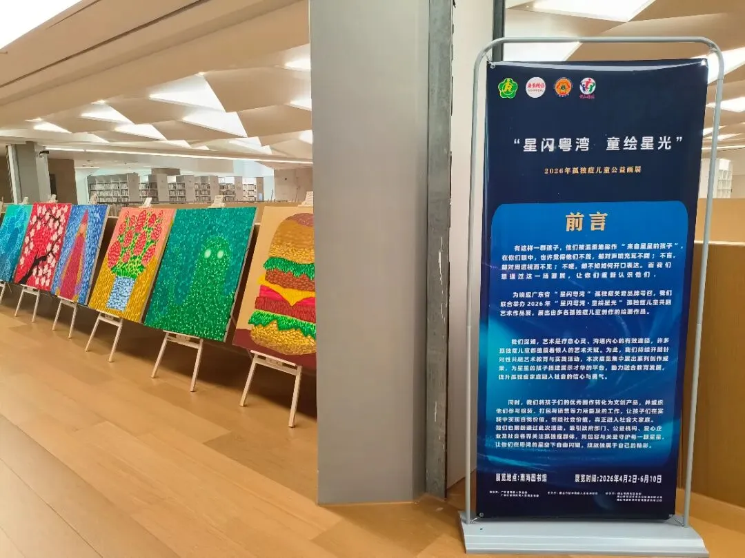 在南海区图书馆宁静的一隅,一场特殊的公益画展正悄然传递着温暖与力量。“星闪粤湾,童绘星光” 孤独症儿童公益画展用斑斓色彩打破沉默,让 “星星的孩子” 们通过艺术打开心扉,也让更多人读懂他们独特的内心世界。