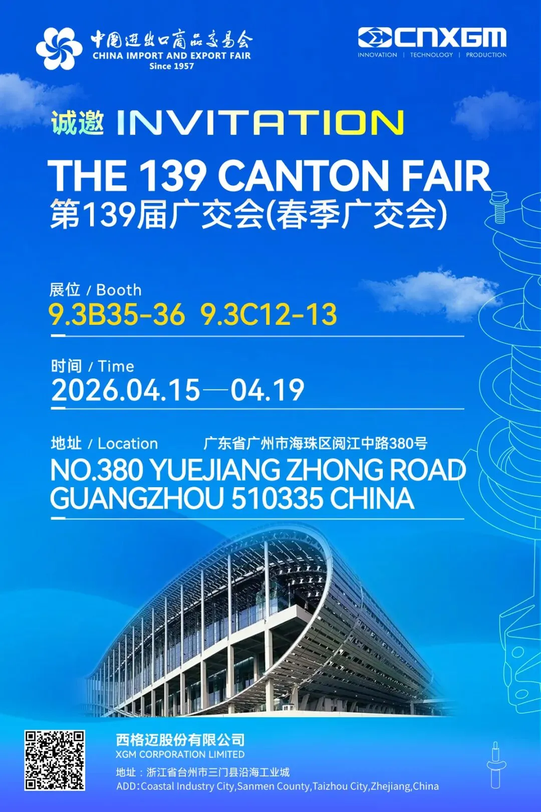 XGM展位号:9.3B35-36 9.3C12-13