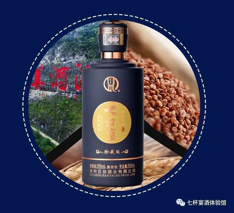所以我要给大家介绍一款来自贵州茅台镇的酱香型白酒,它就是汉台七杯宴。这款酒来自茅台镇7.5平方公里酱香酒核心产区,经长期窖存精心勾调而成,具有酱香突出,酒体醇厚,香味协调,优雅细腻,回味悠长等特点。