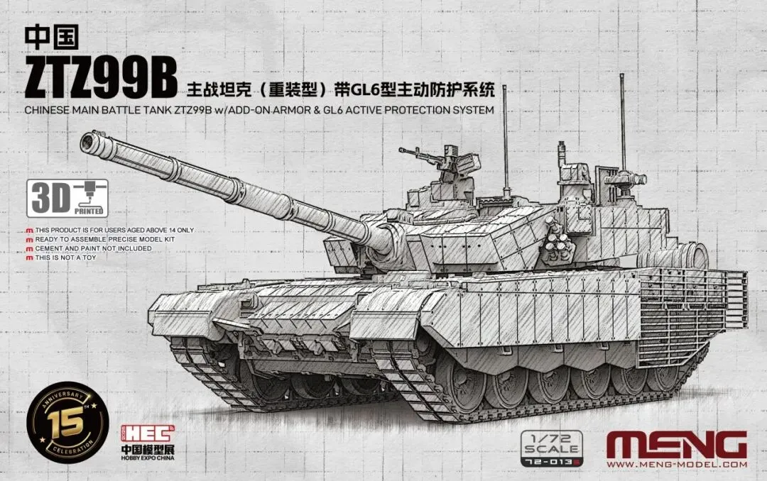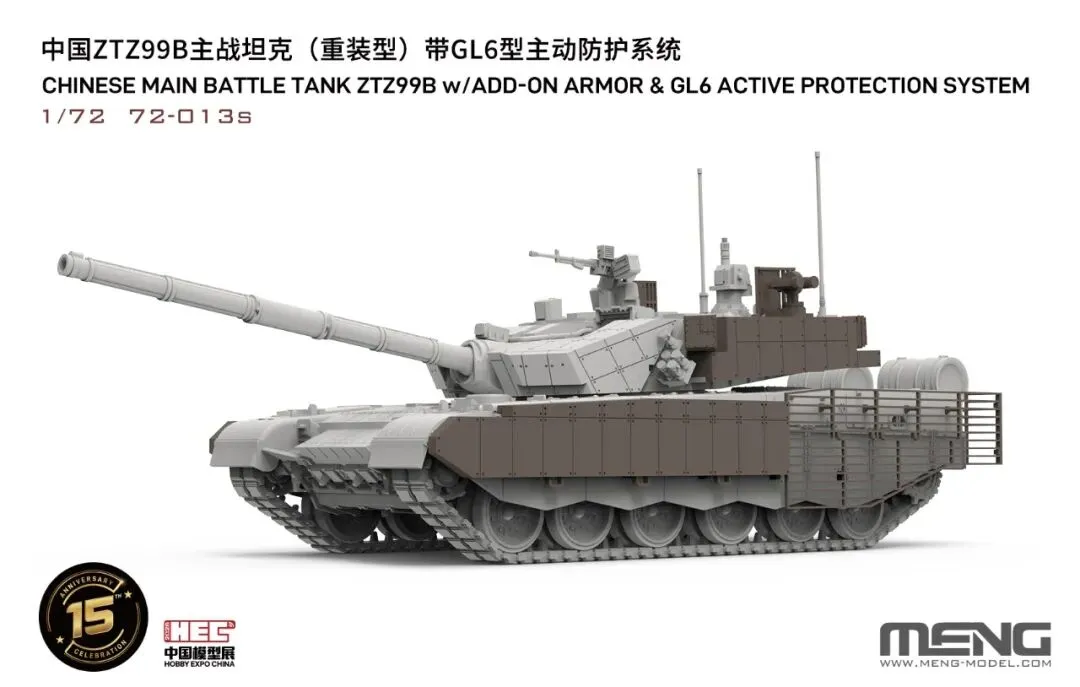 72-013s 1/72 中国ZTZ99B主战坦克(重装型)带GL6型主动防护系统限定新品将于2026年4月17日至19日在2026 HEC MENG展台(2K33)现场销售!