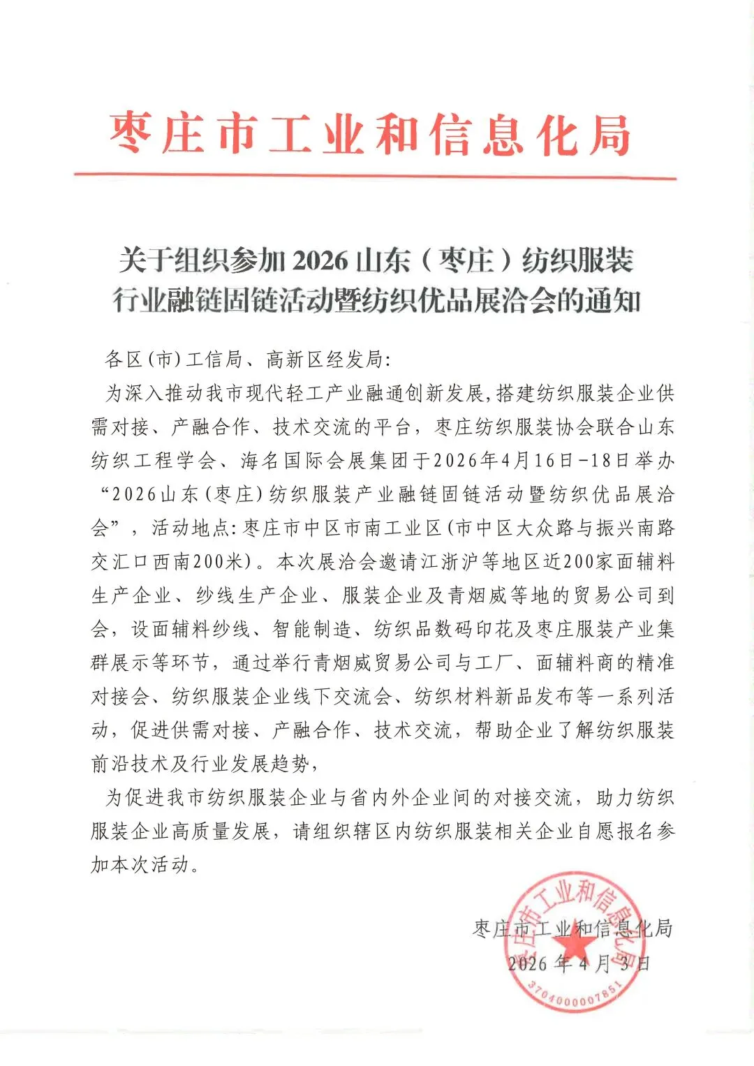 01.2026山东(枣庄)国际纺织服装供应链博览会开幕仪式