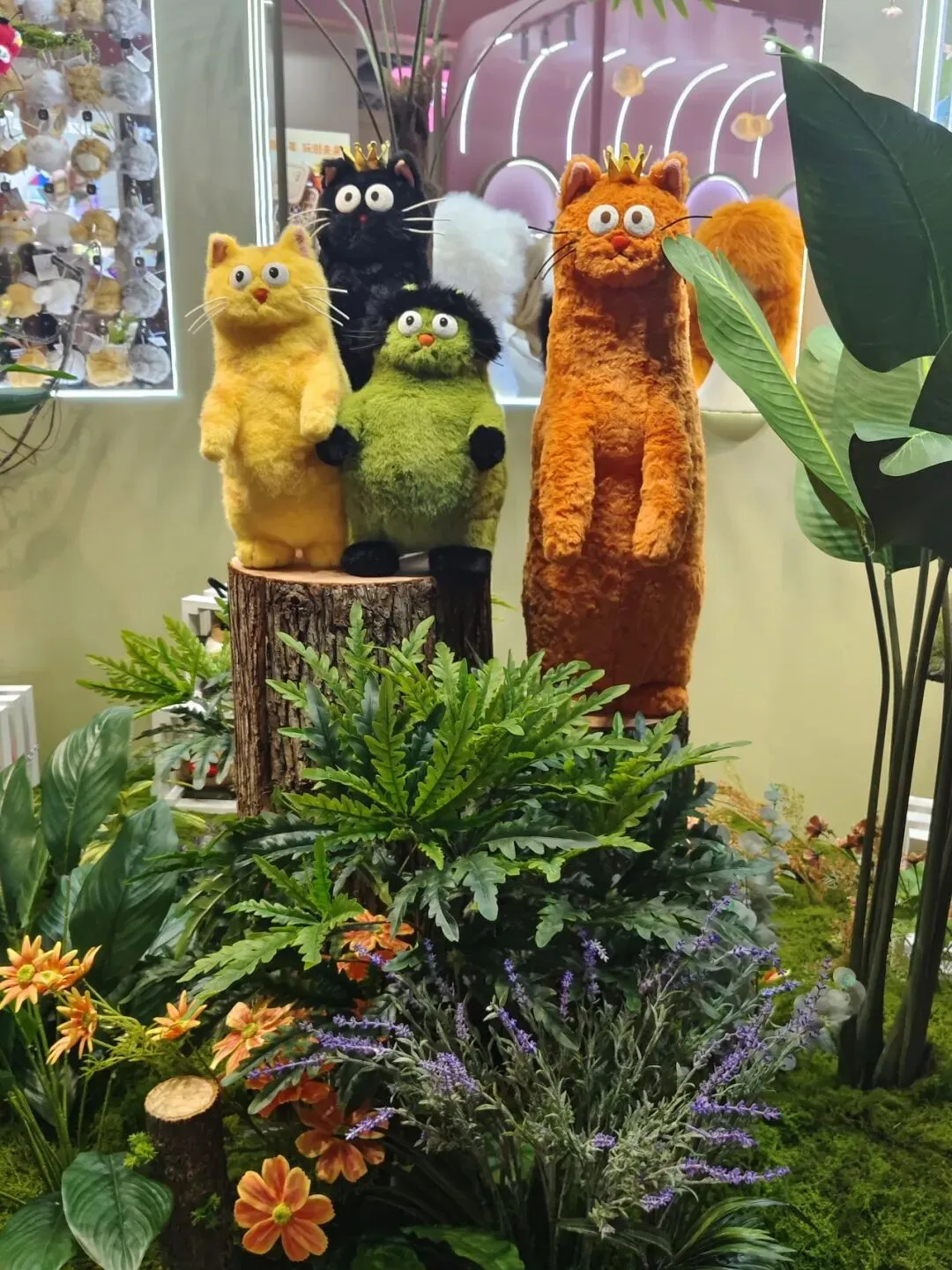 展厅布置的4只小猫玩偶,实在是太有趣了。