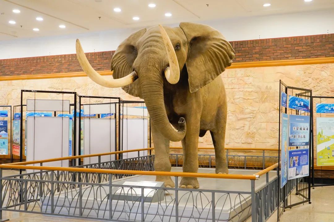 首先映入眼帘的就是大厅中央高大健硕的非洲象,