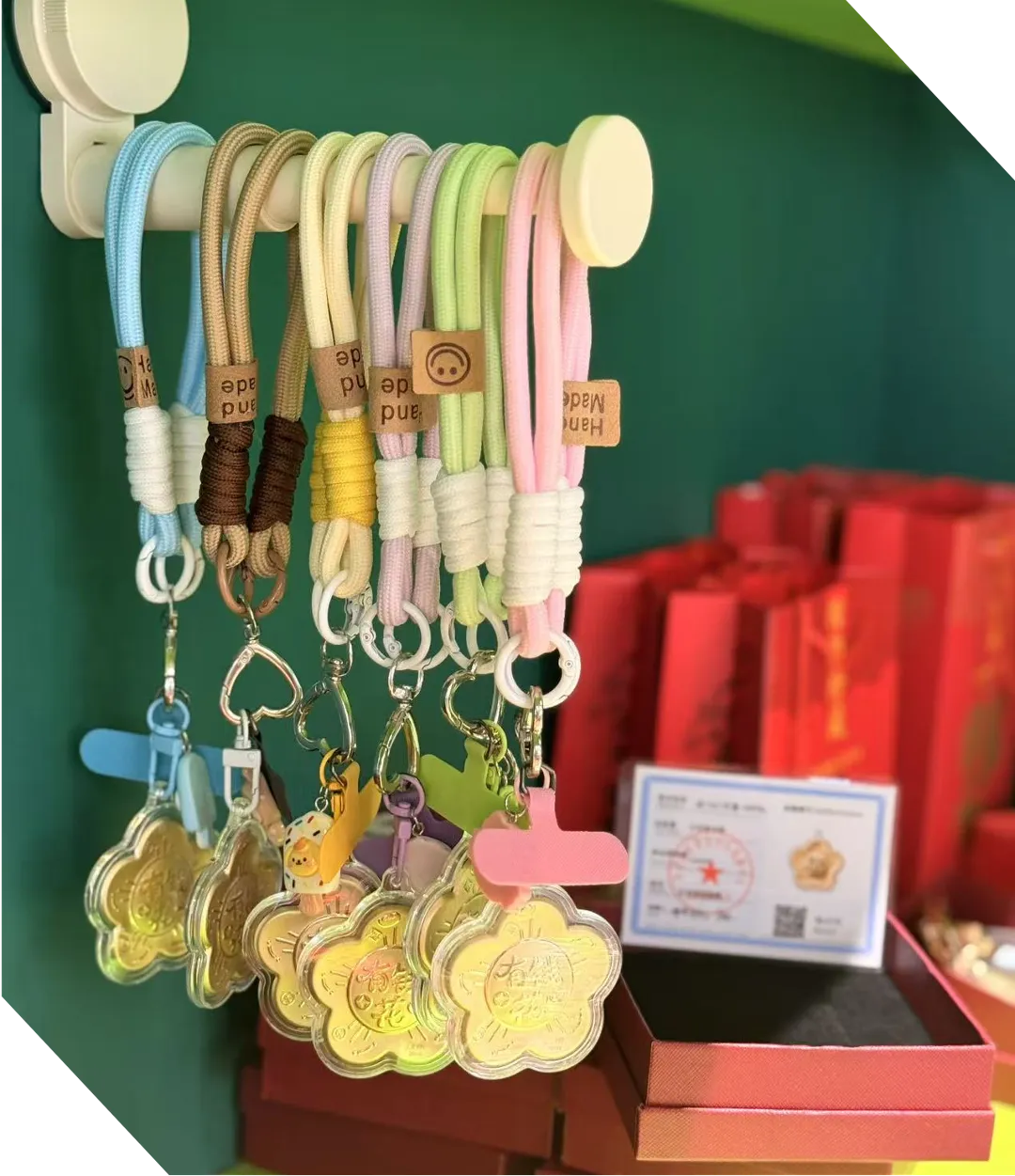 “有钱花”开运挂饰:梅花造型挂饰,金色主体刻着“有钱花”字样,寓意“有钱有闲,花开富贵”,挂在包上、钥匙上,既是装饰,也能为你锁住马年财运!