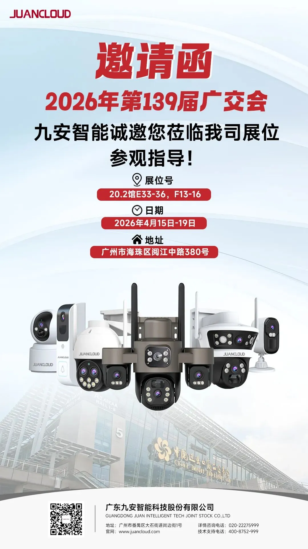 万物互联,智引未来。2026年4月15日至19日,广东九安智能科技股份有限公司将亮相第139届中国进出口商品交易会(2026年春季广交会)。以全新姿态,邀您共赴这场全球瞩目的贸易盛会。