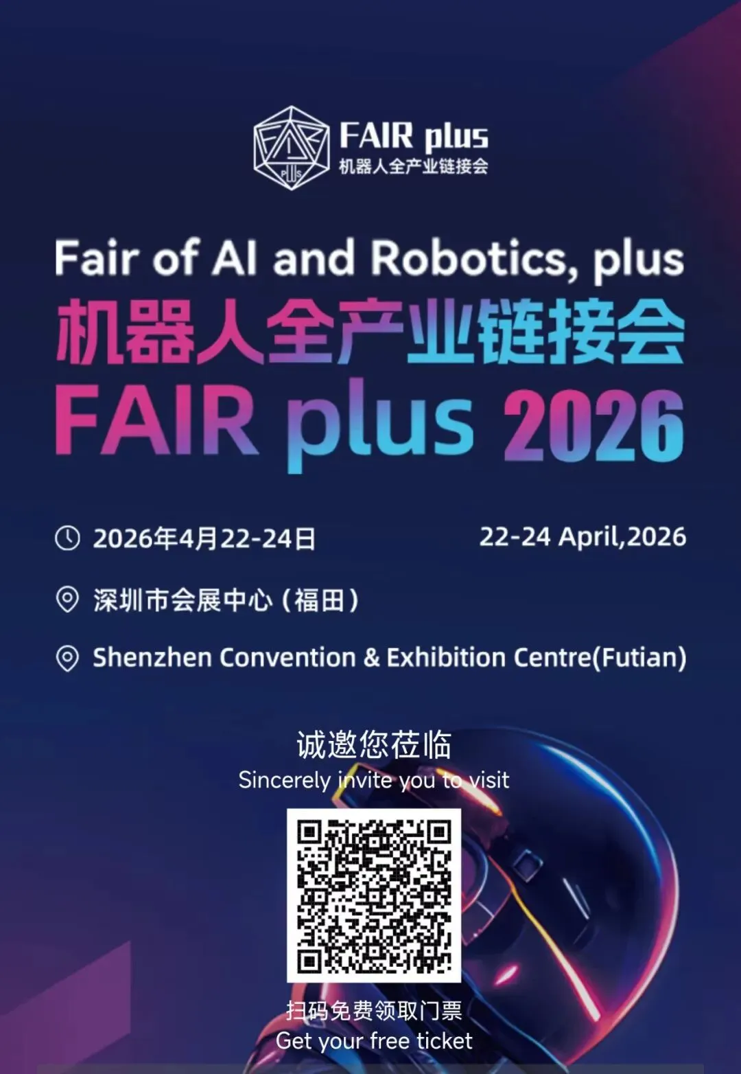 2026年4月22日-24日,由广东省工业和信息化厅、深圳市工业和信息化局指导,中国科学院深圳先进技术研究院、深圳市机器人协会、德国斯图加特展览公司联合主办,华夏幸福(深圳)产业发展有限公司等承办的FAIR plus机器人全产业链接会将在深圳会展中心(福田)隆重启幕。FAIR plus 2026定位于“世界级机器人开发制造技术大会”,是一个专注于机器人全产业链技术和开发资源的平台。通过学术会议、技术标准、社区培育、供需对接等方式,创造人工智能+机器人各产业链环节的开发、产品、工程、方案等技术人员,以及有意引入机器人的场景方相关工艺、设备、信息技术人员线下见面的机会,达成合作,以有效促进机器人向智能化方向发展,连同提升产业整体能力的建设和配置。