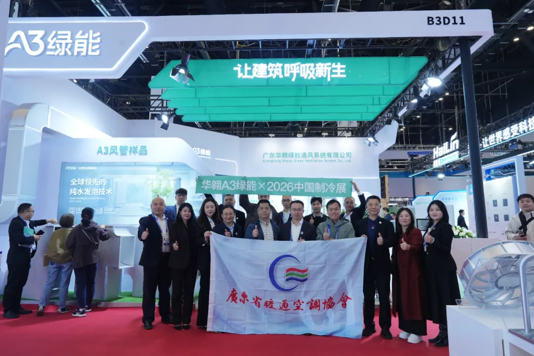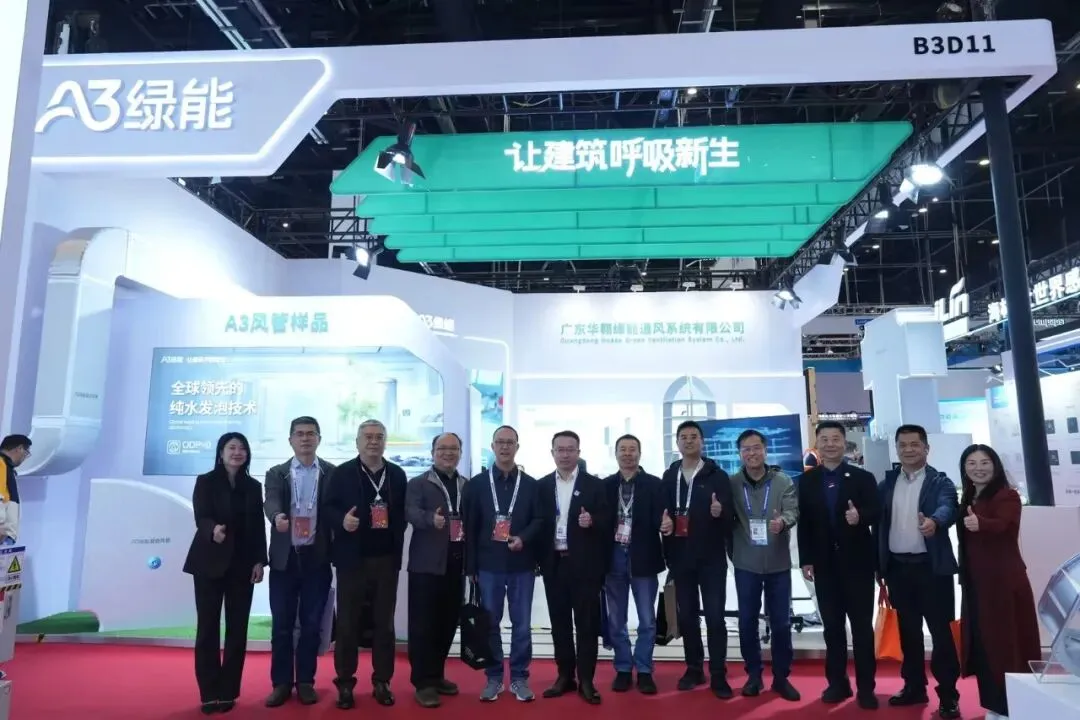 广东省暖通空调协会代表团也专程来到华翱绿能展位。协会领导详细了解了A3绿能复合风管的技术特点与市场应用情况,对华翱绿能近年来在绿色通风领域的技术突破和国产替代成果给予充分肯定。协会表示,将继续发挥桥梁纽带作用,支持华翱绿能这样的优秀民族品牌在行业内推广落地,共同推动暖通空调行业向绿色、低碳、高质量发展迈进。