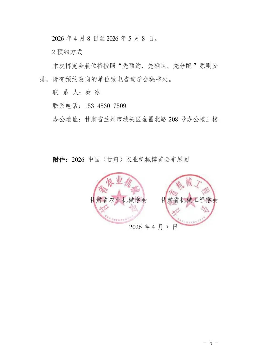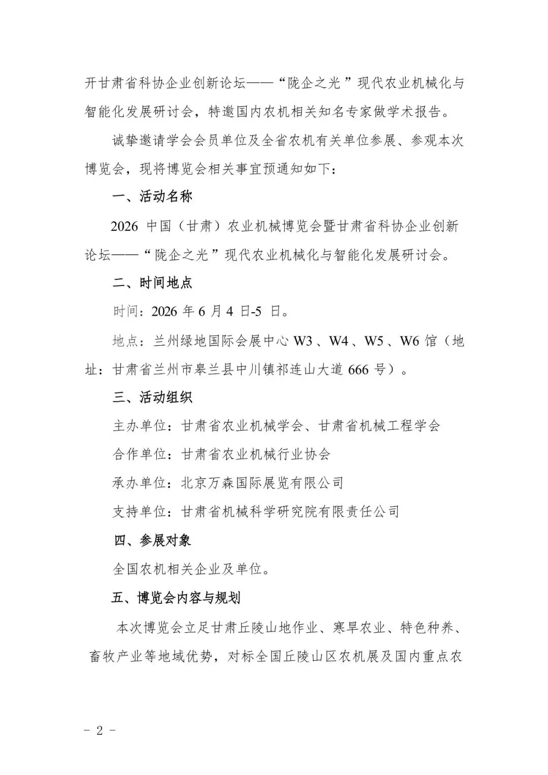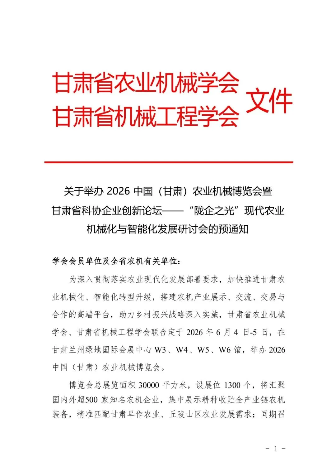 关于举办2026中国(甘肃)农业机械博览会暨甘肃省科协企业创新论坛一"陇企之光”现代农业机械化与智能化发展研讨会的预通知