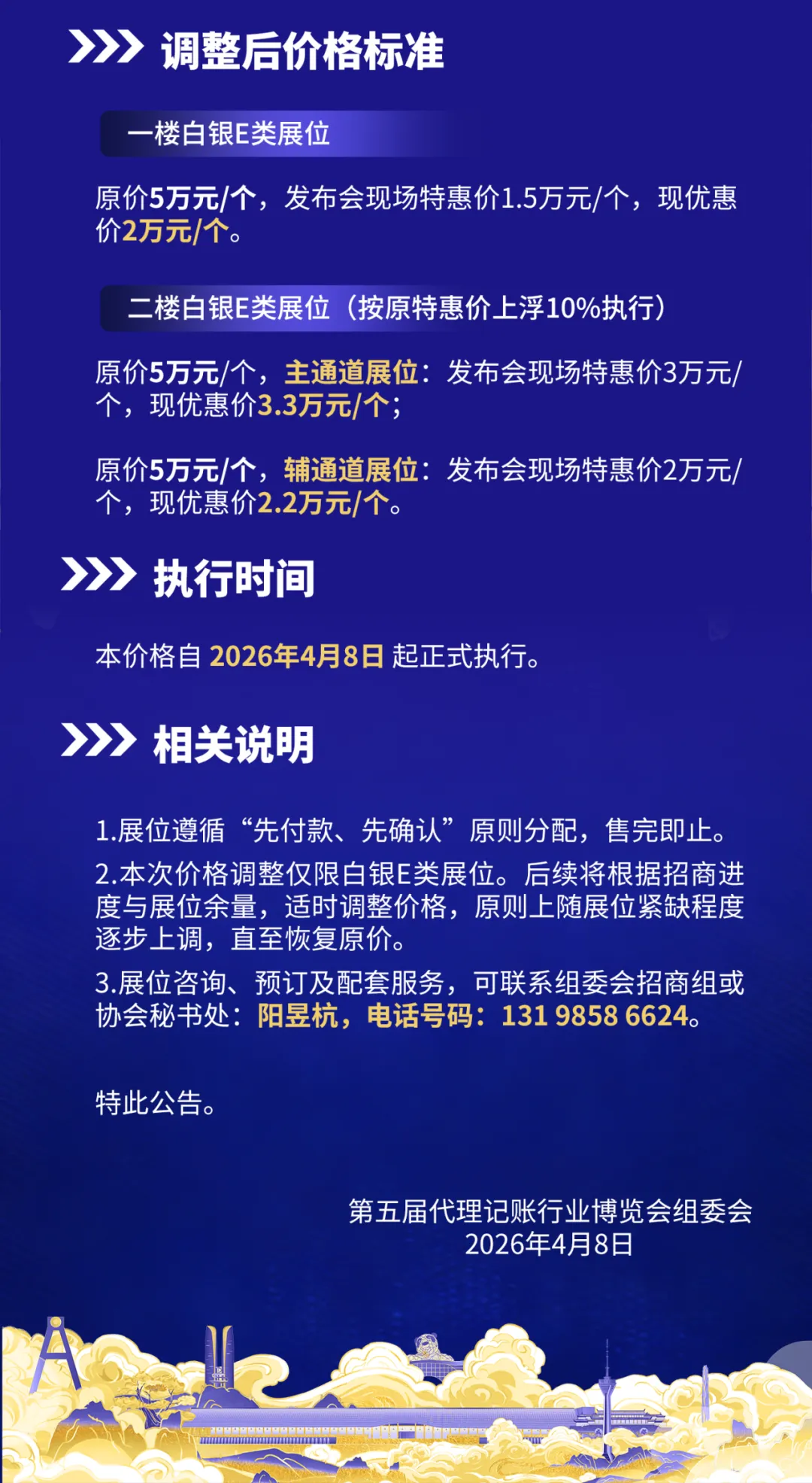【代博会发布】第五届代理记账行业博览会关于上调白银E类展位价格的公告