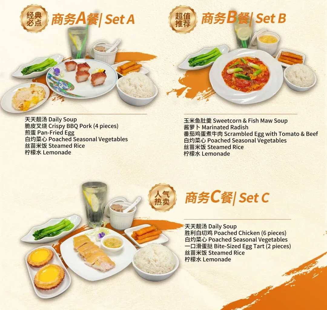 广交会期间,我们特别推出三款单人商务套餐,专为独自奔波在路上的您准备。从经典粤菜到暖心靓汤,一人一份,不多不少,刚刚好。