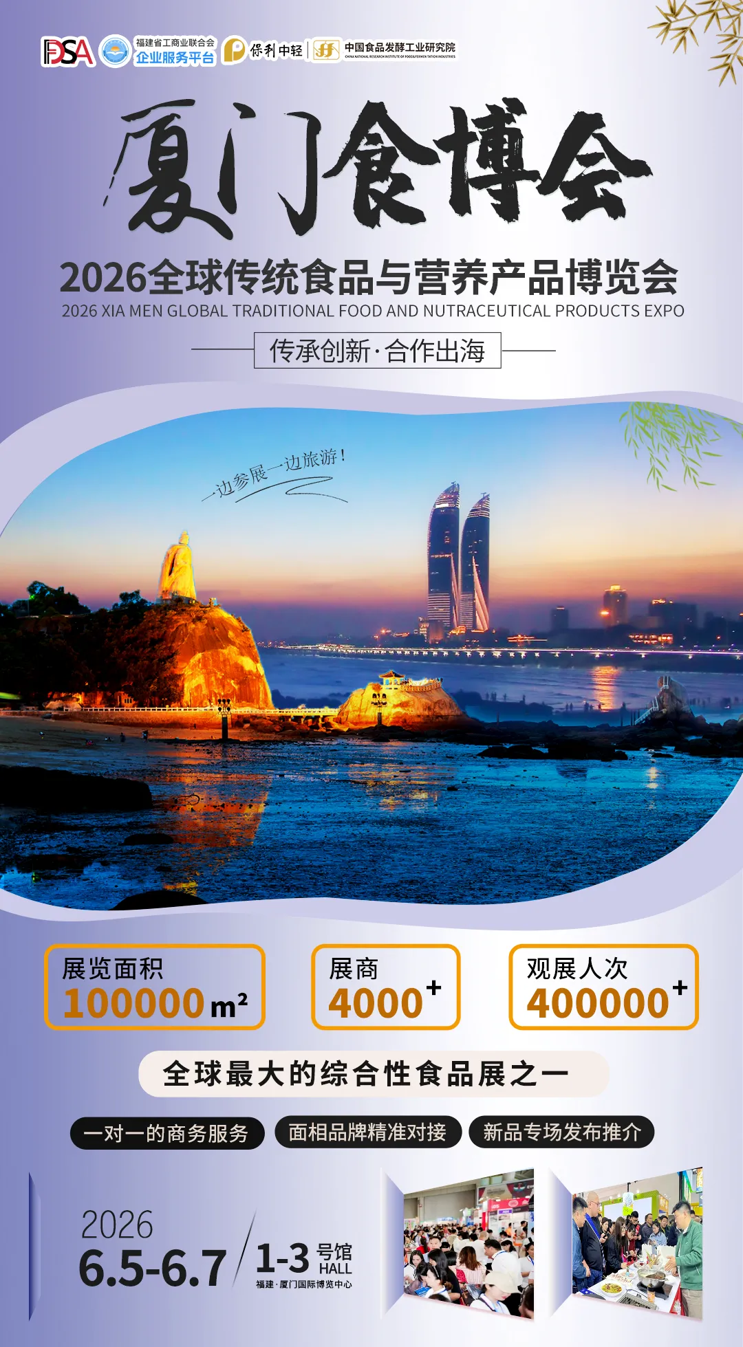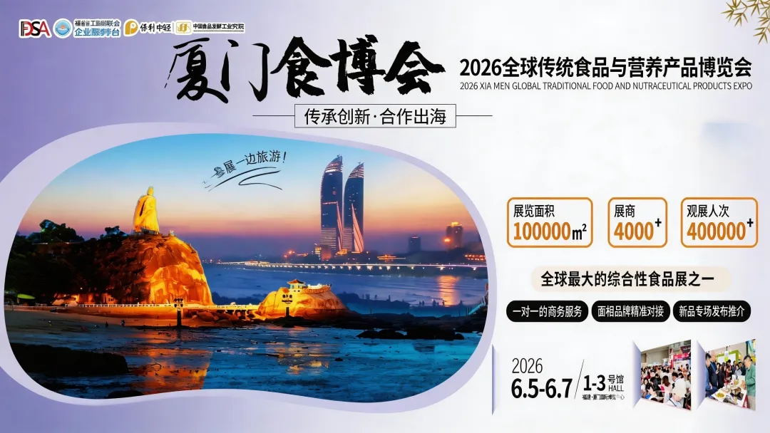 当传统匠心碰撞营养新潮,当全球资源汇聚鹭岛厦门,一场撬动万亿产业的行业旗舰盛会即将启幕。以传承创新・合作出海为核心主题的2026全球传统食品与营养产品博览会,定于6月5日—7日在厦门国际博览中心盛大举行,诚邀全产业链同仁抢占黄金展位,执掌全球食品贸易新机遇。