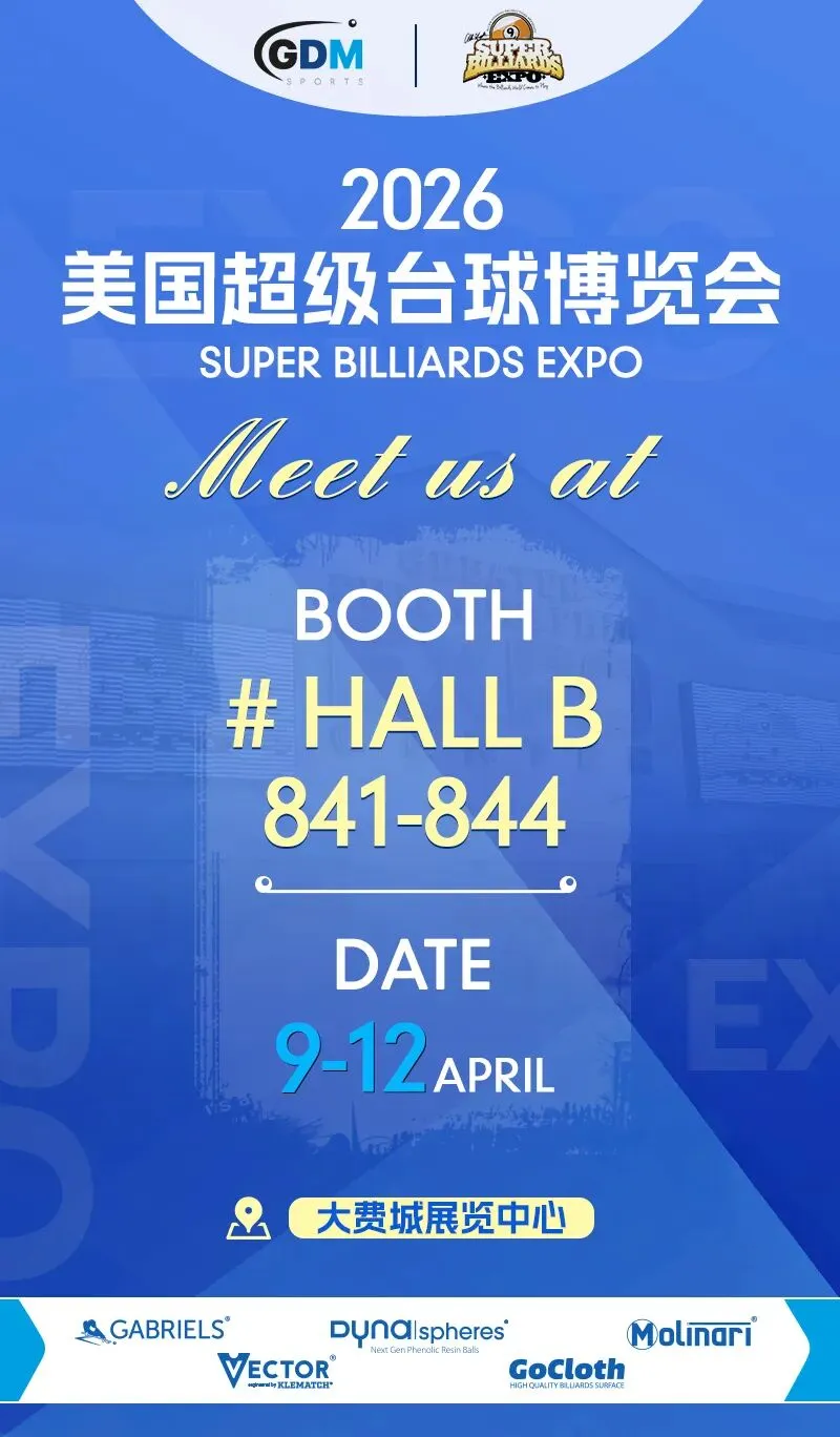 2026年4月9日,GDM Sports集团将携多重惊喜亮相美国超级台球博览会。现场不仅有重磅新品惊喜揭晓,更集结经典明星产品、巨星现场互动、专属福利等丰富内容,全方位呈现专业实力与满满诚意。