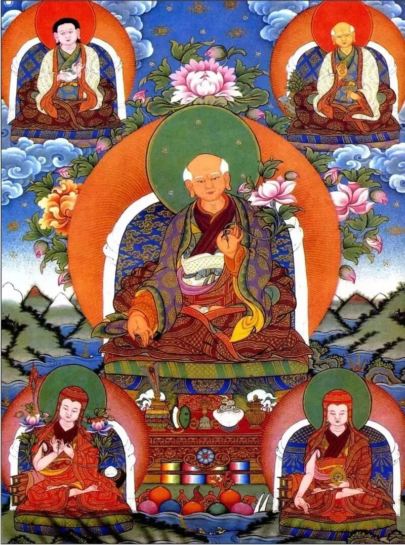萨迦派采用昆氏家族世袭的独特传承(血统与法统并重),其发展史上以 “萨迦五祖” 最为著名。初祖:贡噶宁波(1092-1158)萨迦寺住持,完善教派体系,被尊为 “萨钦”(萨迦大师)。二祖:索南孜摩(1142-1182)精通显密,学识渊博。三祖:札巴坚赞(1147-1216)以严守戒律著称。四祖:萨迦班智达・贡噶坚赞(1182-1251)著名学者,“班智达”(大学者)即源于此。1247 年,63 岁高龄赴凉州与蒙古阔端王 “凉州会谈”,促成西藏和平归附大蒙古国,纳入中央版图。五祖:八思巴・洛追坚赞(1235-1280)萨班之侄,被忽必烈尊为 “帝师”,统领全国佛教。创制 “八思巴文”,并在元朝支持下建立西藏萨迦政权,实行政教合一。