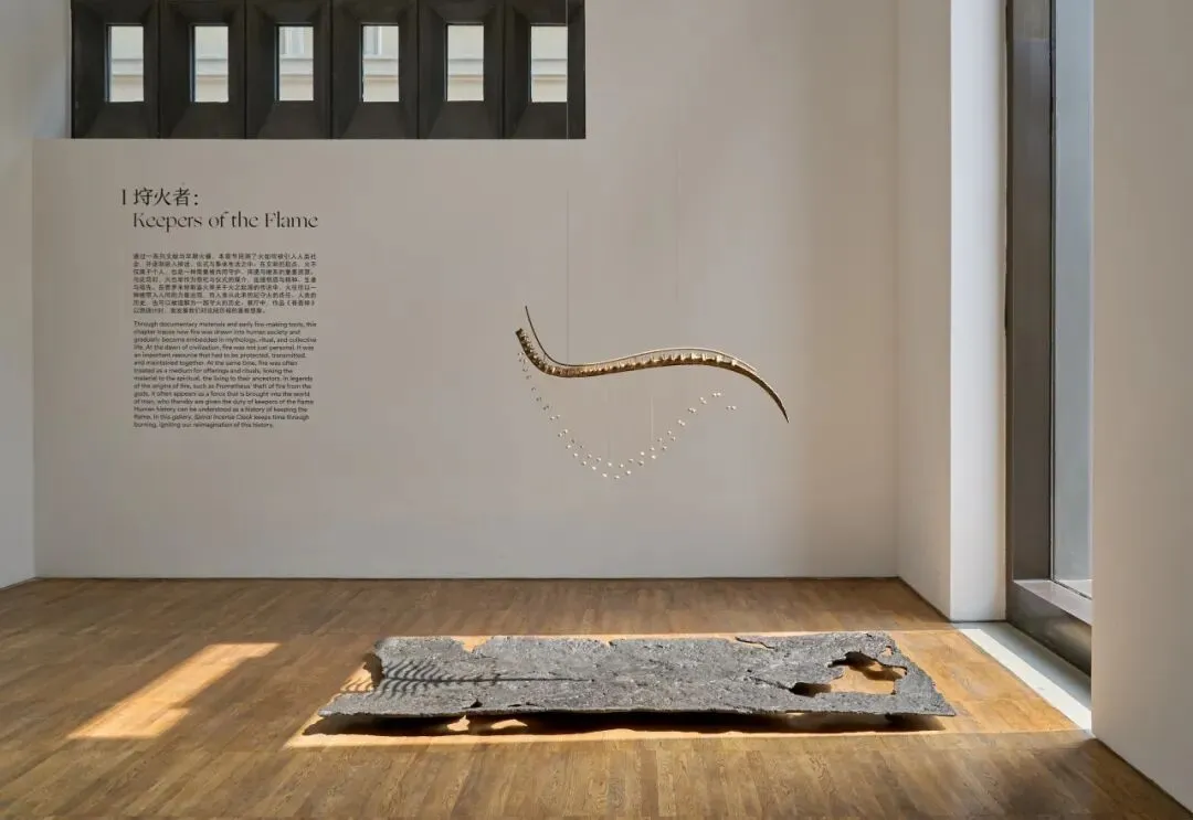在普罗米修斯盗火等关于火之起源的传说中,火往往以一种被带入人间的力量出现,而人类从此承担起守火的责任。人类的历史,也可以被理解为一部守火的历史。展厅中,作品《脊香钟》以燃烧计时,激发着我们对这段历程的重新想象。