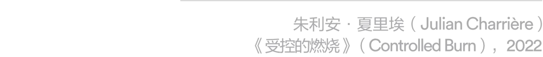 本章节聚焦火在控制与失控之间摇摆的张力——从野性的自然力量逐步被纳入工业文明,但背后仍隐藏着难以被完全驯服的能量。三位艺术家将燃烧引入创作,在可控的结构中接纳偶然,同时直面火的毁灭性力量。他们是某种意义上的“火术士”,冒险接近火,试图与之共舞。