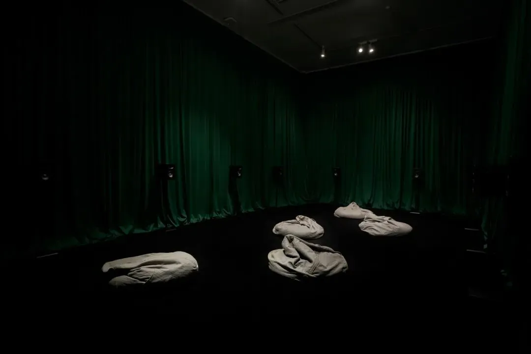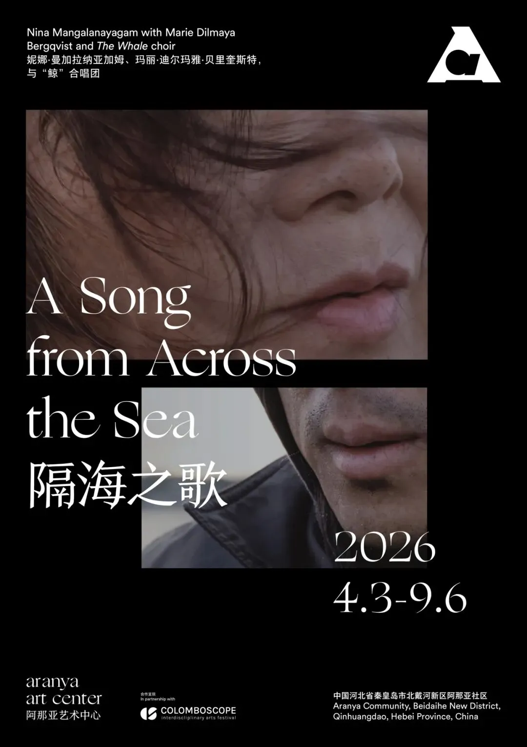 此次展览是瑞典艺术家妮娜·曼加拉纳亚加姆与玛丽·迪尔玛雅·贝里奎斯特在中国的首场展览。两位艺术家邀请瑞典跨国收养者合唱团“鲸”(The Whale),呈现同名视听作品《隔海之歌》(A Song from Across the Sea)(2026)。该作品由 Colomboscope 2026 与阿那亚艺术中心共同委任,并获瑞典研究理事会(Vetenskapsrådet)支持。