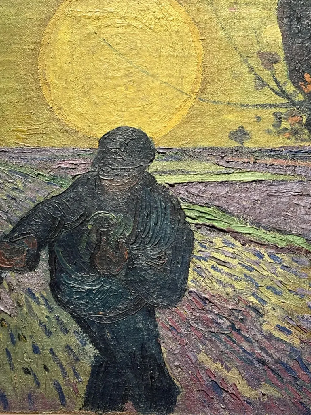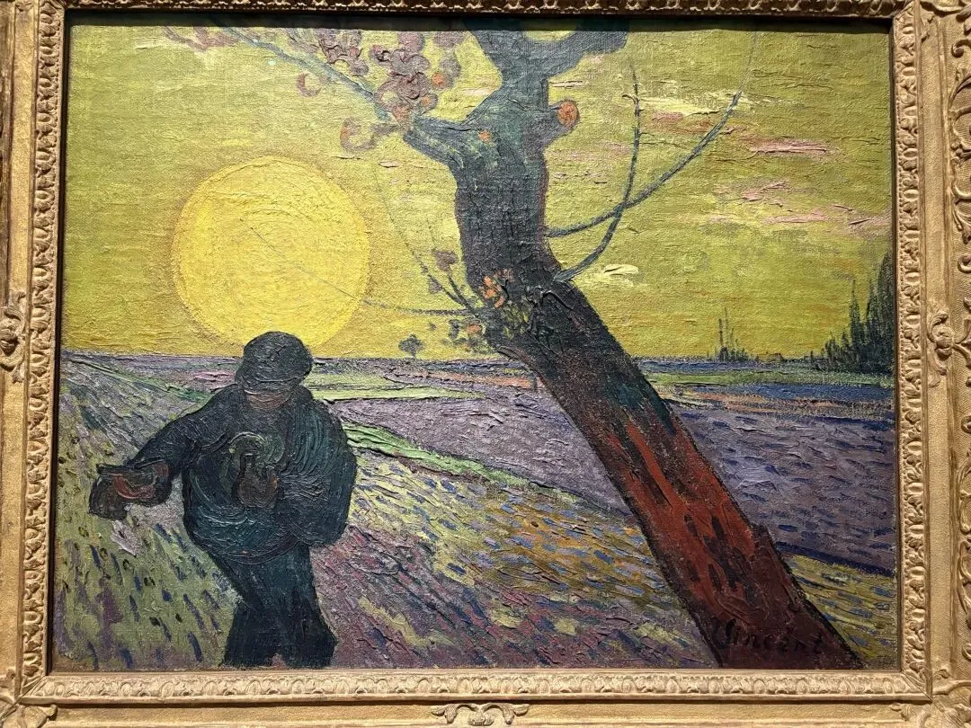 在艺术家自己看来,这幅以巨大太阳为背景勾勒出播种者剪影的作品,是他在阿尔勒创作的最重要作品之一。他主要在画室中完成此作,将其他艺术家的主题元素、日本版画的风格与自己对自然的观察融为一体。通过将巨大的日轮置于播种者身后,他创造出一幅充满象征意义与基督教寓意的、极具表现力的画面。
