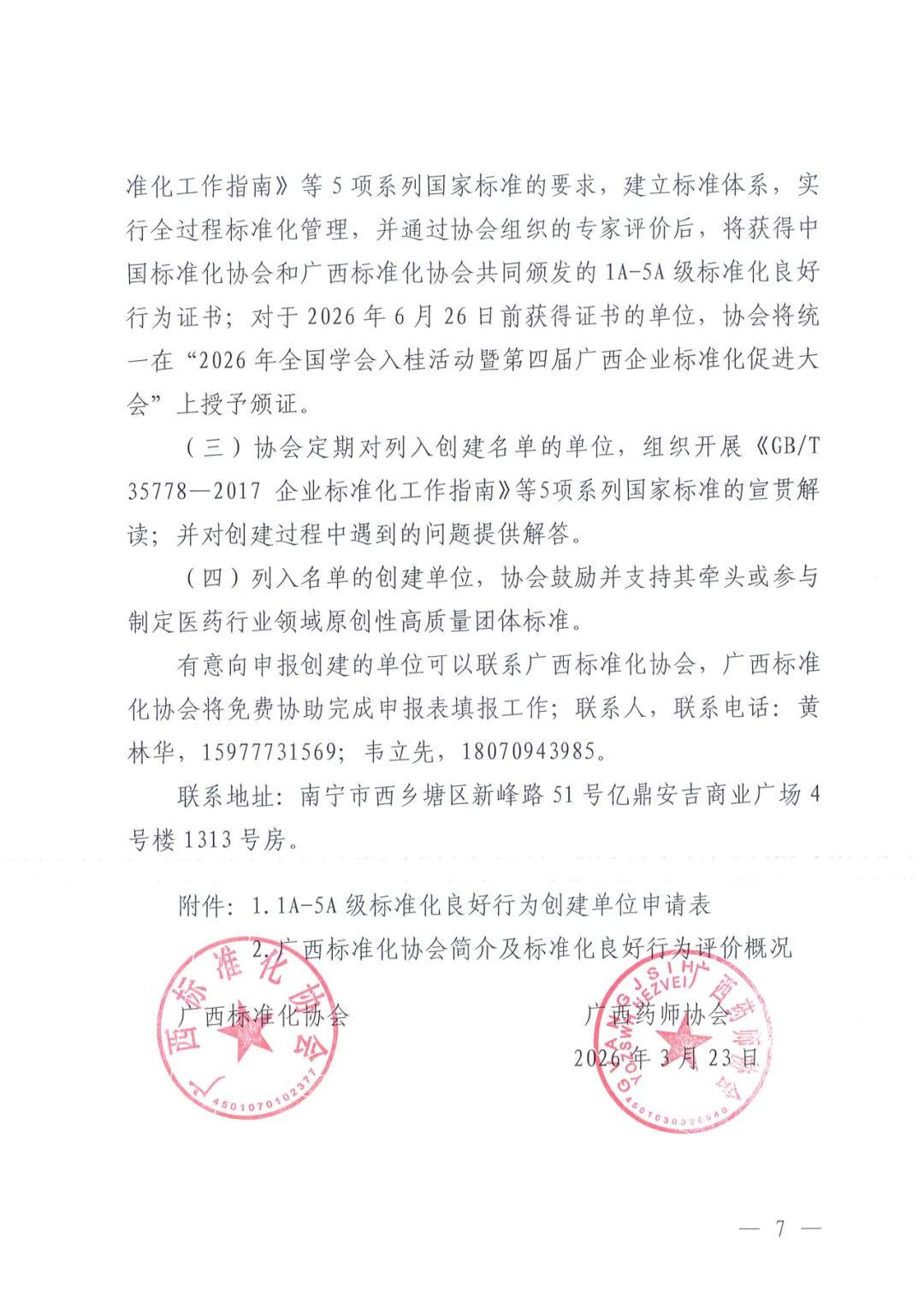 1.广西标准化协会、广西药师协会关于联合征集2026年1A-5A级标准化良好行为创建单位的通知(已盖章)